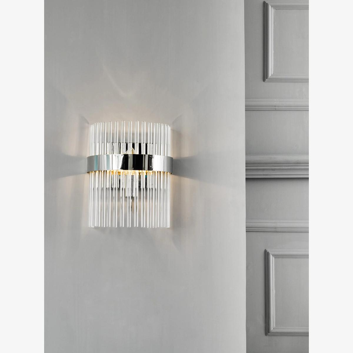 This wall light is a stunning choice for adding a touch of elegance to various interiors. I love how the polished nickel finish brings a sleek, modern feel while pairing beautifully with classic or contemporary decor. It's particularly well-suited for bedrooms, living rooms, or even hallways where a bit of ambient lighting is desired. For practical styling tips, consider placing a pair on either side of a mirror or console table to create symmetry, or over a bedhead to serve as functional bedside lighting with a stylish twist. Its clean lines and polished look make it versatile enough to suit both minimalist schemes and more opulent, glamorous spaces.