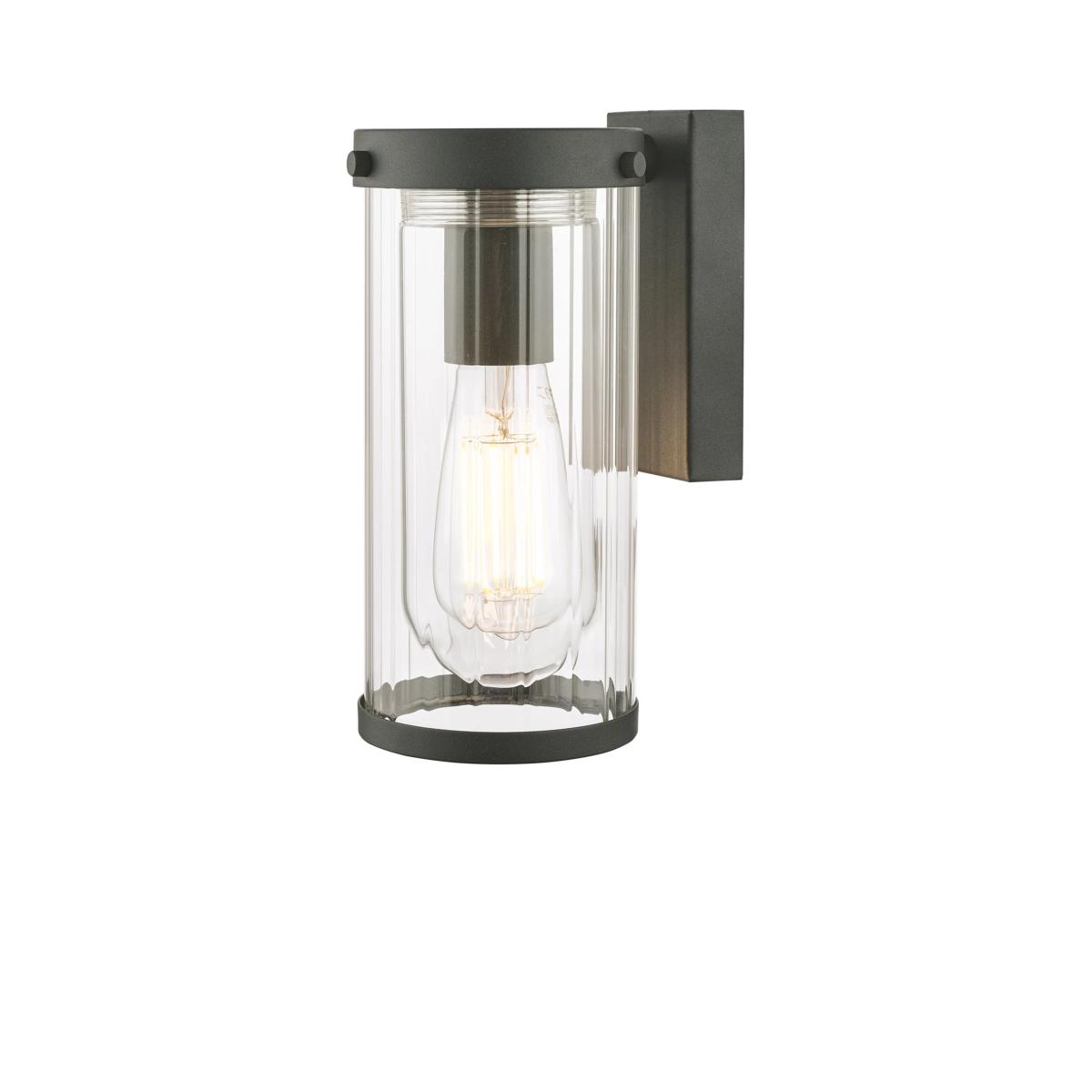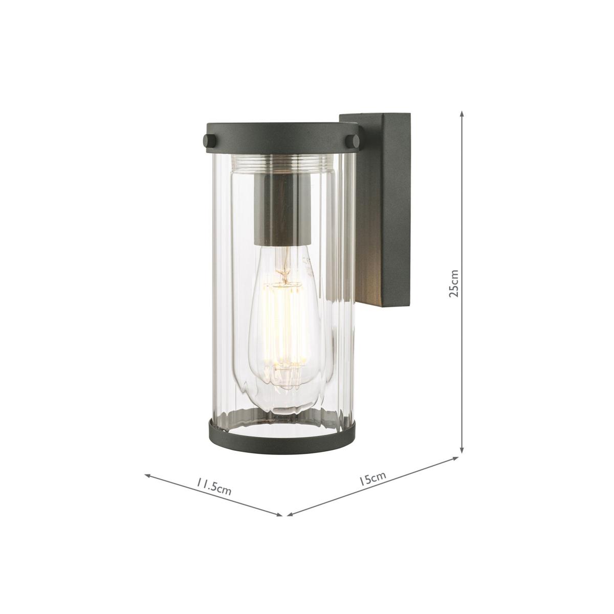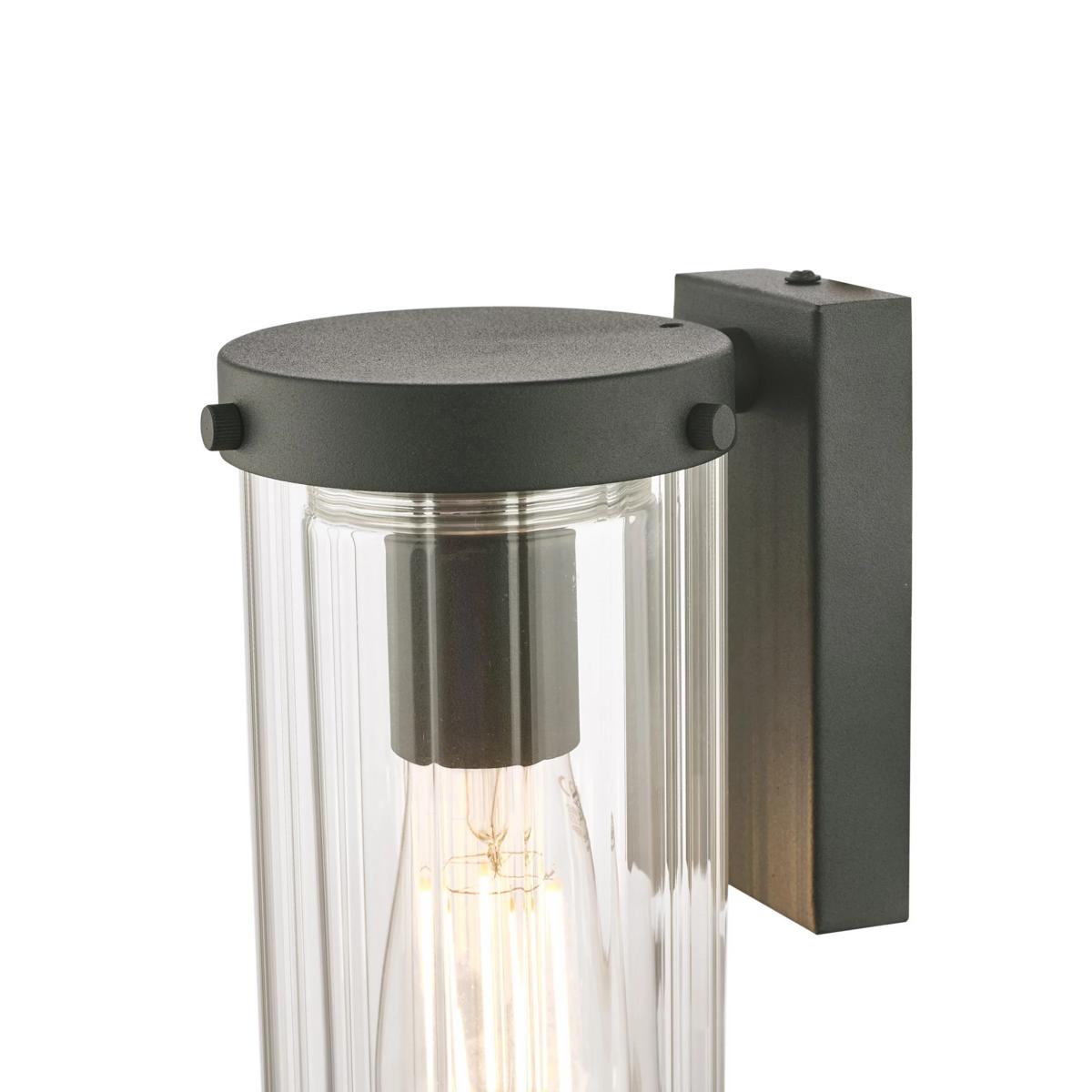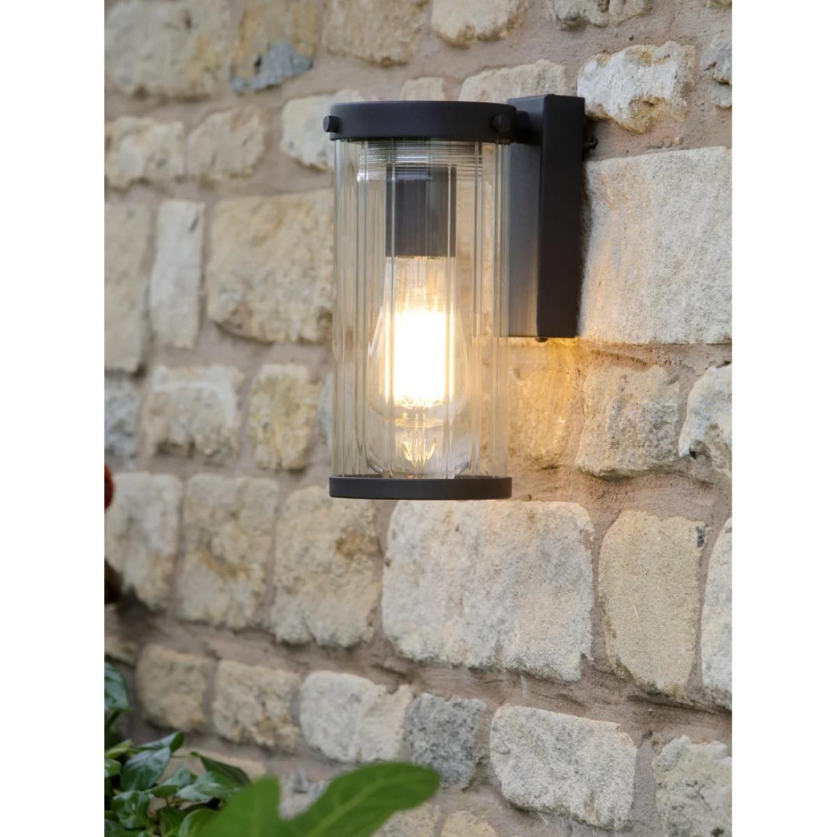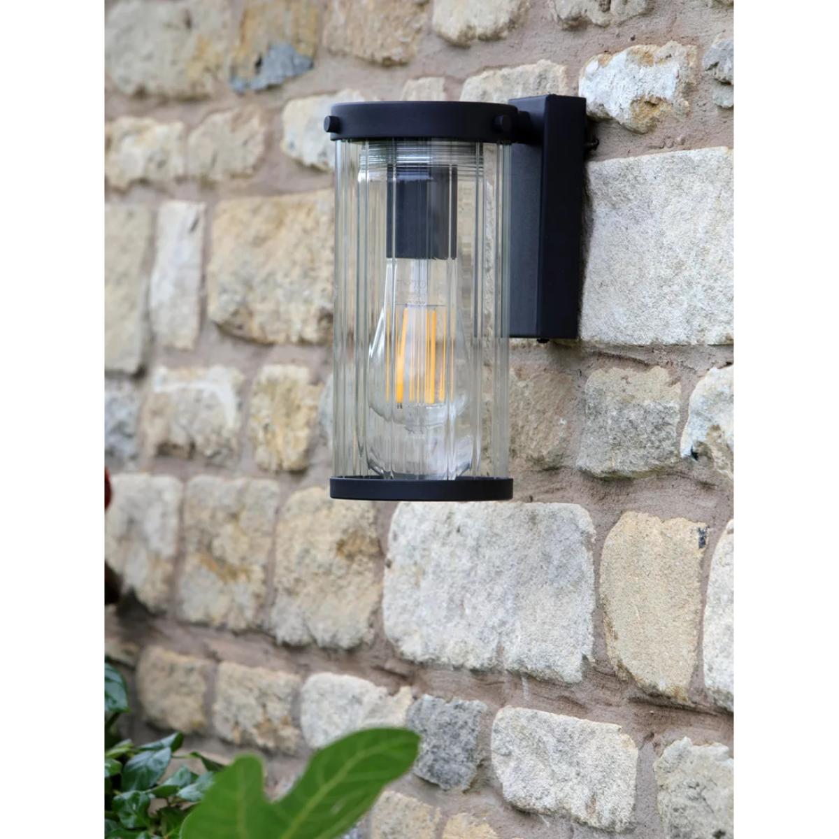 Laura Ashley's Arthur wall light is an elegantly proportioned contemporary wall light, perfect for lighting a patio or placing beside a doorway. This large, cylindrical outdoor light is fitted with clear glass, gently ribbed on the inside, which creates striking highlights when lit. Mounted on a rectangular wall plate, it is finished in matt powder-coated black. The light bulb in enclosed in a dome-ended tube, to protect it from the weather.