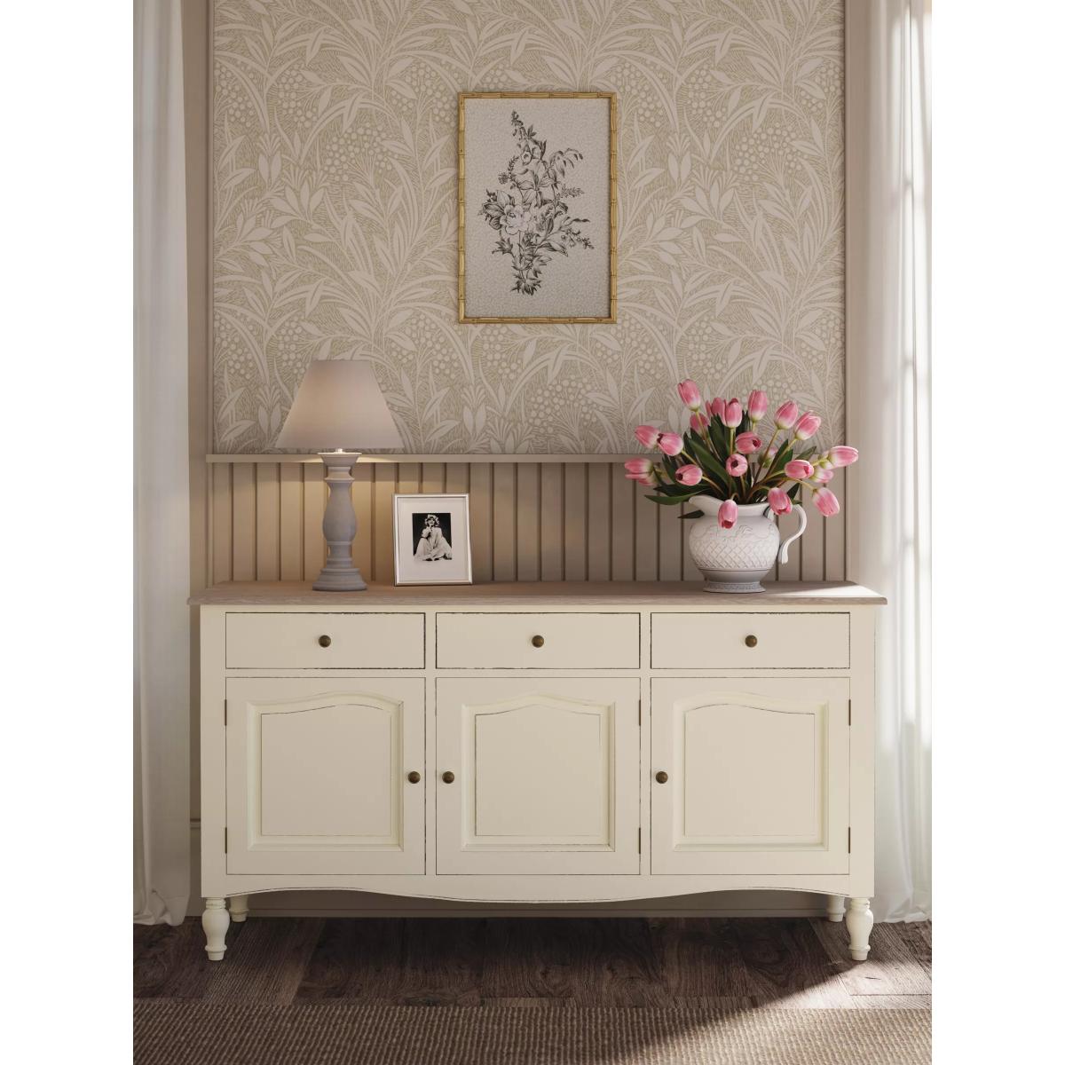 Taking inspiration from one of the most popular ranges from the Laura Ashley Archive, the Avonmore sideboard evokes a vintage cottage feel. The apron and turned legs are carefully shaped, side panels and doors are raised and fielded in the traditional style and furnished with antique brass hinges and handles. The story is completed with a gently distressed, hand-applied cream paint finish and a contrasting weathered wood top. Want to see it first? You may want to see and get a feel for the furniture in one of our shops before ordering. We'll be able to tell you where the range you'd like to view is on display.