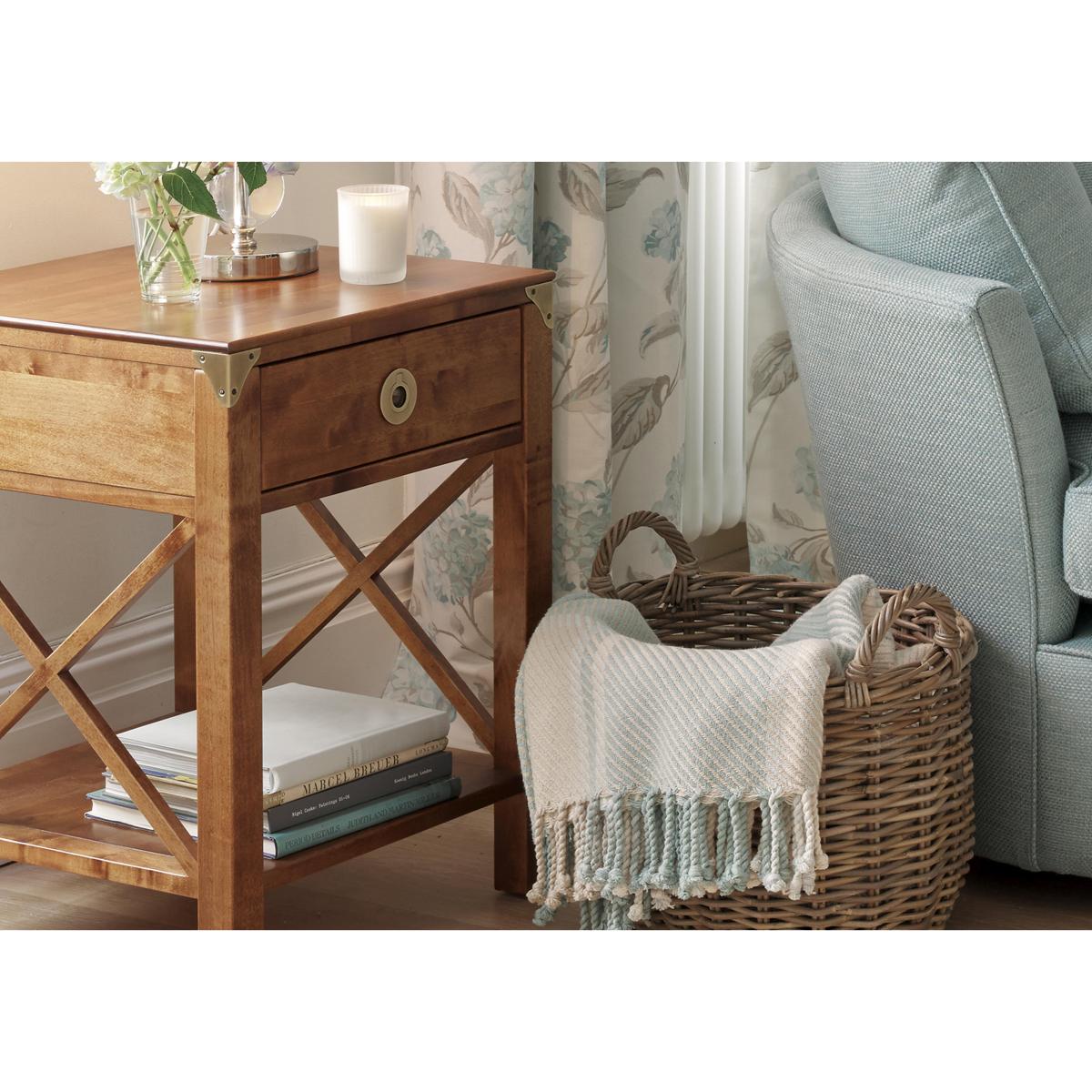 The Laura Ashley Balmoral collection seamlessly blends timeless design with practical elegance. Crafted from sturdy solid birch, each piece boasts a rich, hand-painted finish that highlights the natural beauty of the wood, showcasing its unique grain and colour variations. Inspired by traditional period furniture, the range features classic brushed brass handles and corner brackets, adding a touch of authentic charm. From extending dining tables to versatile storage solutions and comfortable seating, Balmoral offers sophisticated style and lasting durability. With its clean lines and refined details, this collection is perfect for creating a cohesive and inviting atmosphere throughout your home. The Laura Ashley Balmoral 1 drawer side table brings understated elegance and practical convenience to your bedroom. Why you'll love it Timeless design with brushed brass hardware and corner accents. Convenient top drawer for keeping personal items neat and tidy. Spacious lower shelf ideal for books, magazines, or trinkets. Crafted from sturdy solid birch wood for lasting durability. Available in two beautiful finishes: dark chestnut or honey. Part of the exquisite Laura Ashley Balmoral range. What you need to know Avoid direct sunlight or placing near heat sources. Wipe clean with a soft, dry cloth. Item code: LABASTBLHO-001