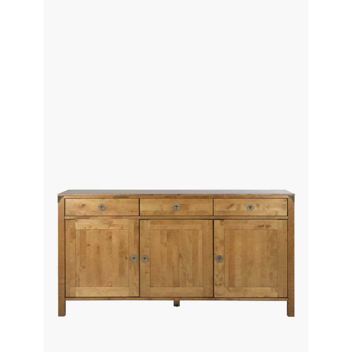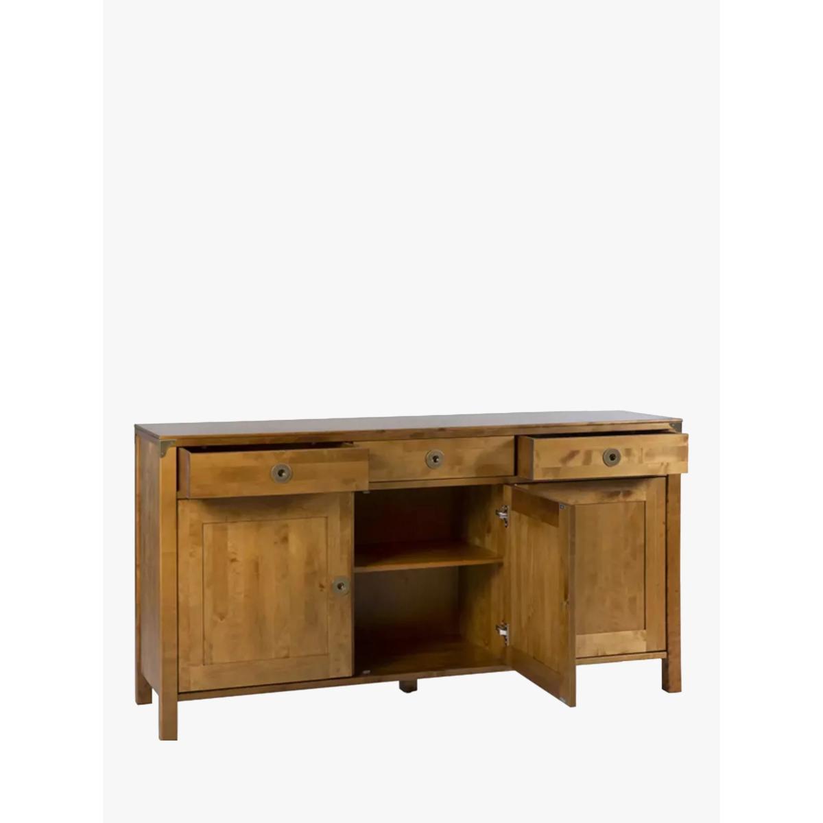 This 3 door, 3 drawer sideboard benefits from three drawers and three doors behind which are two adjustable shelves. The sideboard is crafted from a mix of solid birch and veneered birch elements and is lacquered for a low maintenance finish. Only the centre leg and the doors need to be attached to begin enjoying this piece - full assembly is not required. Want to see it first? You may want to see and get a feel for the furniture in one of our shops before ordering. We'll be able to tell you where the range you'd like to view is on display.