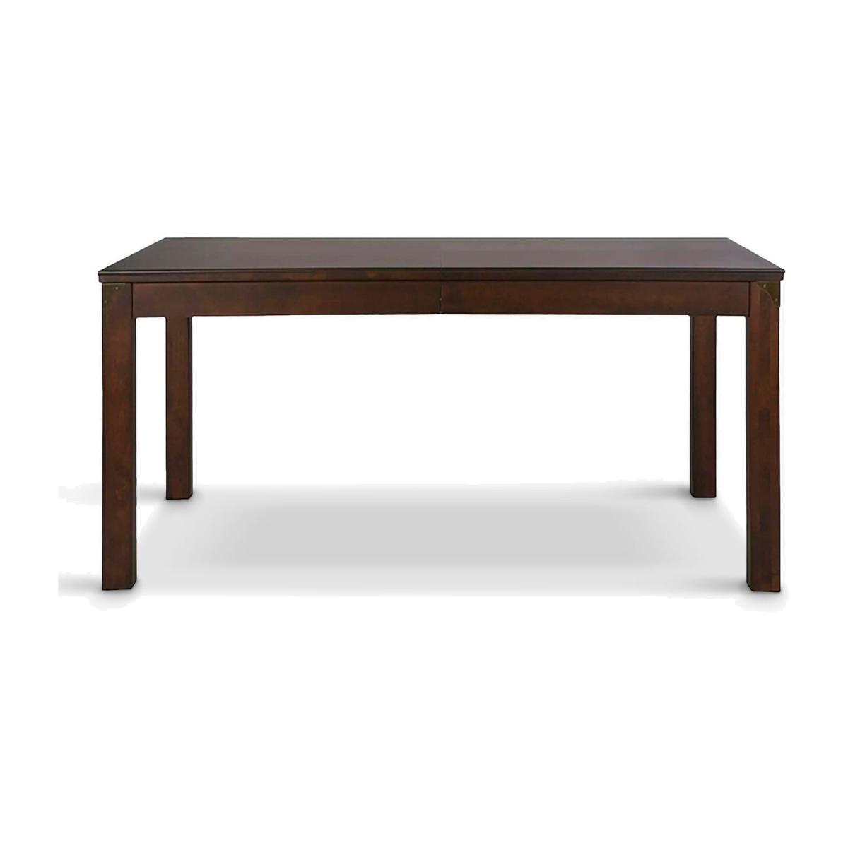 I’m a fan of this dark-chestnut extending dining table for its clean lines and warm finish, which blend as easily into a classic country kitchen as they do a modern-farmhouse or transitional dining space. The simple silhouette means you can layer in texture - think woven linen runners or leather-backed chairs - to add depth without competing with the wood tone. For styling, keep the centrepiece minimal: a low ceramic bowl of seasonal foliage or a pair of tapered candles works well. When guests arrive, simply slide out the hidden leaf and add extra chairs or a bench at one side. Its sturdy legs leave plenty of room for seating arrangements, so you can mix and match metal, wood or upholstered chairs depending on your mood.
