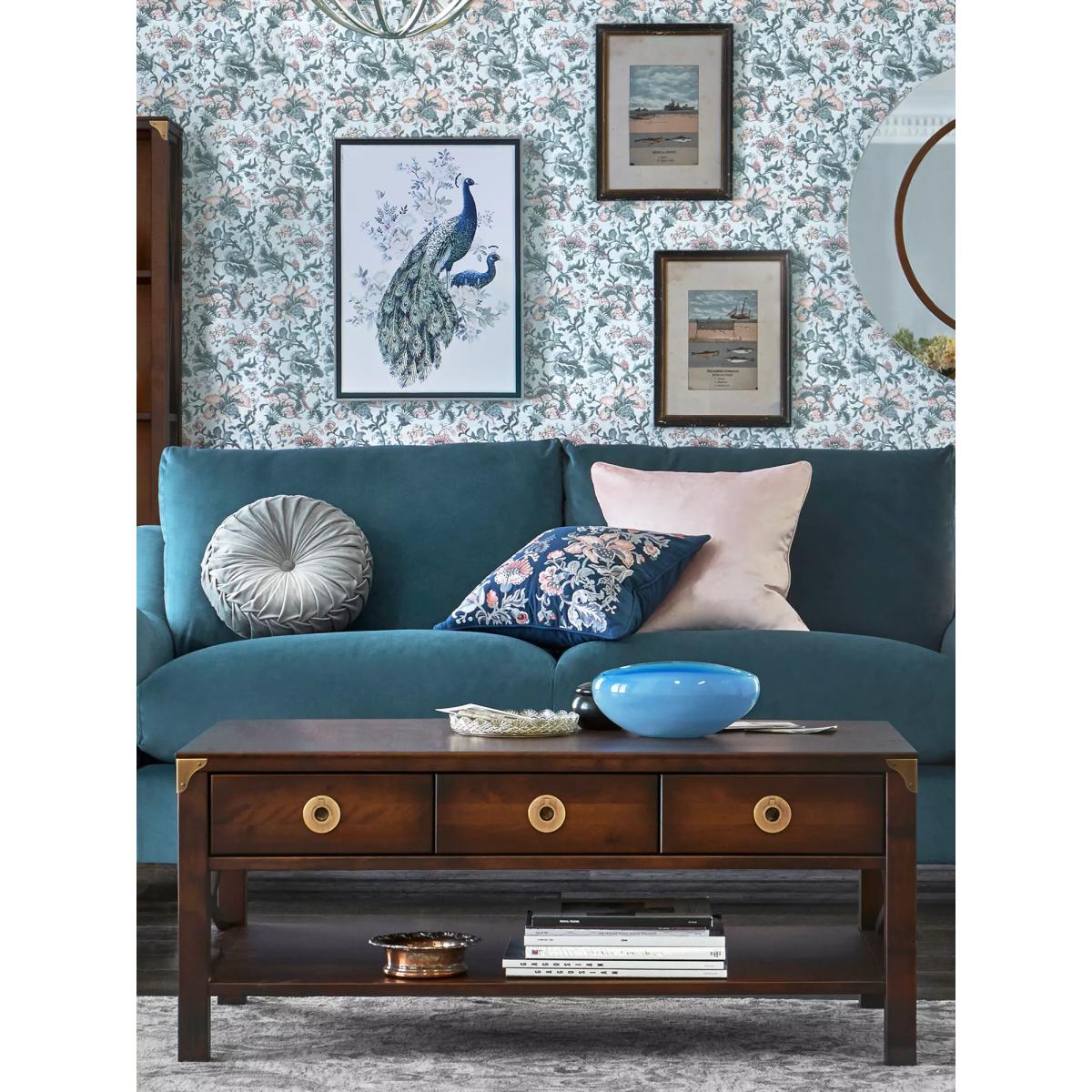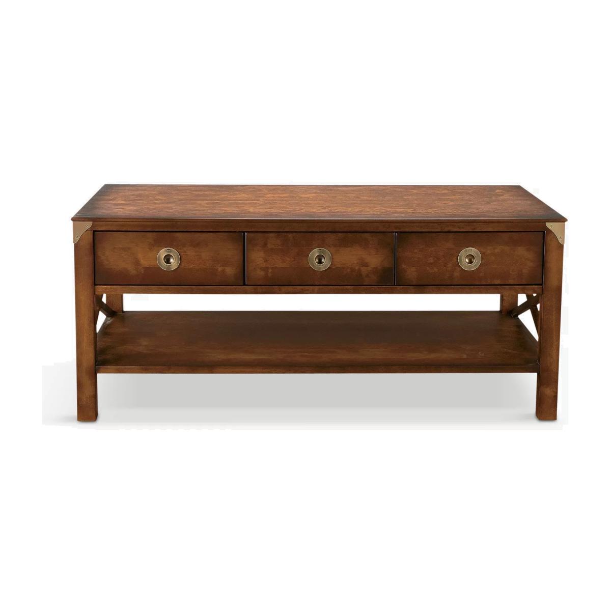 Made from solid birch wood with a hand-applied patina to enhance a warm finish, this coffee table is designed with three handy drawers and fixed lower shelf. While its design may suit traditional interiors, note the cross-over detail on either side of the frame and the accents of antique-brass hardware. These design points give it a retro, Art Deco edge, so it's a distinctive option for the centre of your living room. Want to see it first? You may want to see and get a feel for this piece of furniture in one of our shops before ordering. We'll be able to tell you where the range you'd like to view is on display.