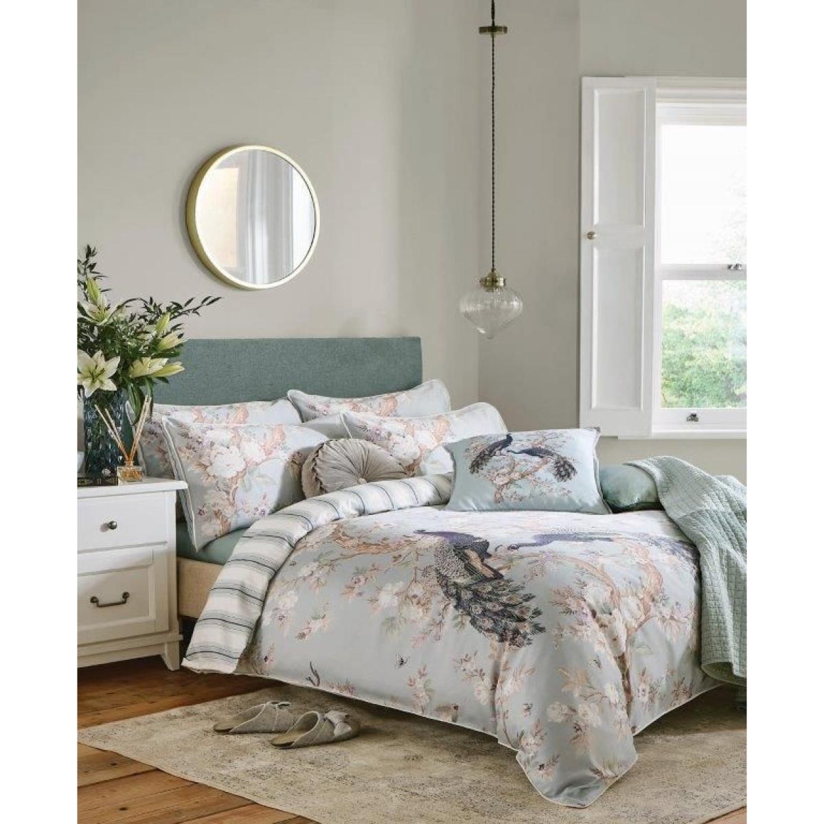 Classically ornate, the Belvedere print features elegant peacocks and timeless florals, and is the perfect addition to luxurious spaces. Belvedere is made from 220 thread count cotton sateen, and finished with a piped edge. This Laura Ashley bedset is reversible so that you can style it two ways and comes complete with matching pillowcases. Additional pillowcases are available to buy separately. Machine Washable 100% Cotton Sateen 220 Thread Count Available in: Single, Double, King and Super King Sizes Set includes: Duvet cover and 2 x Pillowcases (1 x Pillowcase in single set) All screens vary in colour reproduction and whilst every effort has been made to display the colour as accurately as possible it is for guidance only