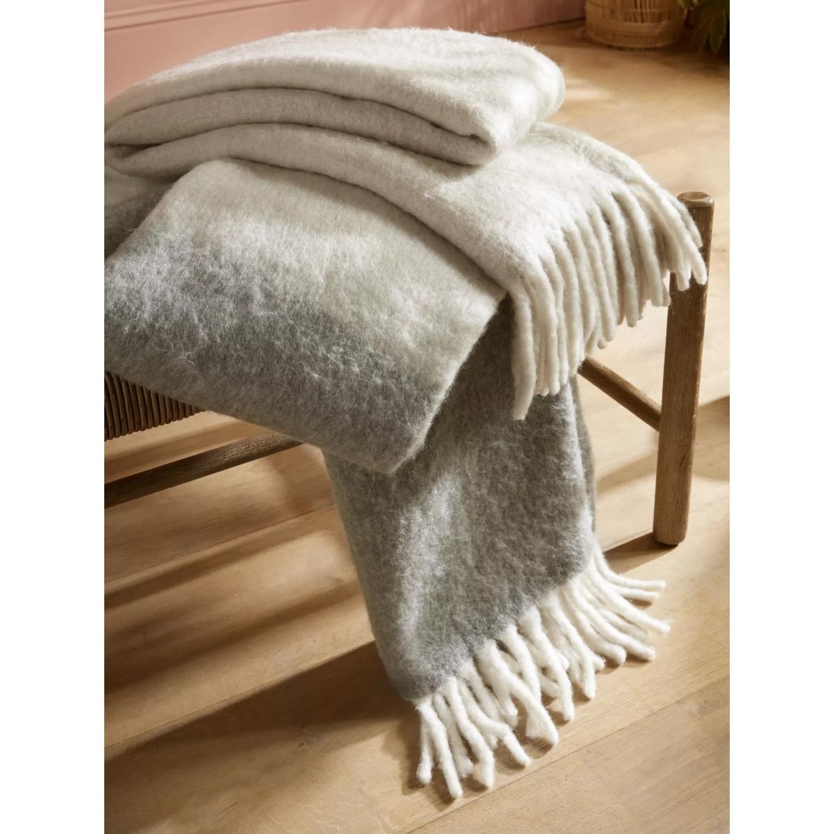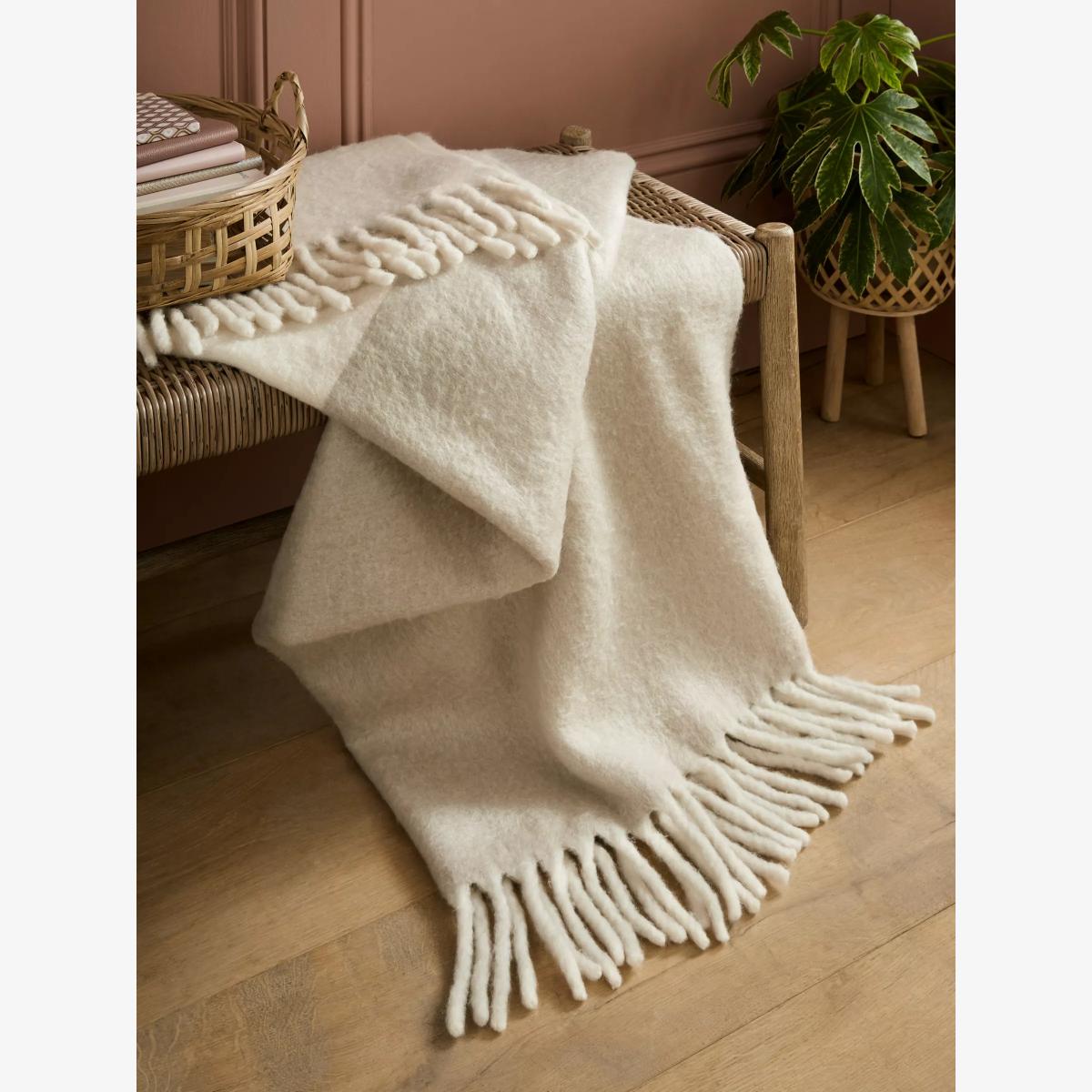 Add cosiness to any room with this luxuriously soft woollen blend throw. Woven in two complementing natural tones, the Bronwen throw is finished with soft, chunky tassels.