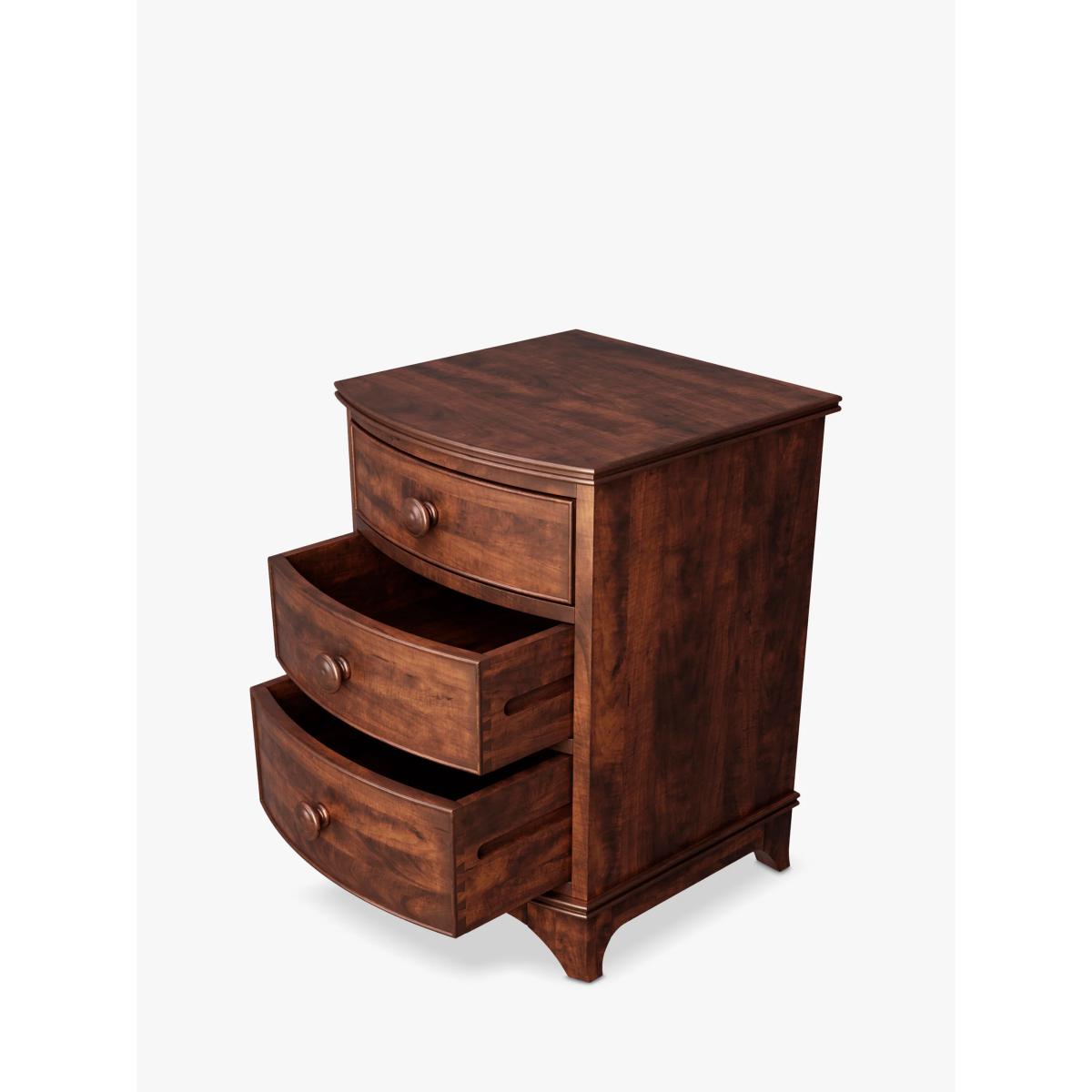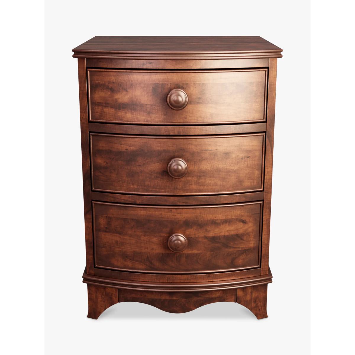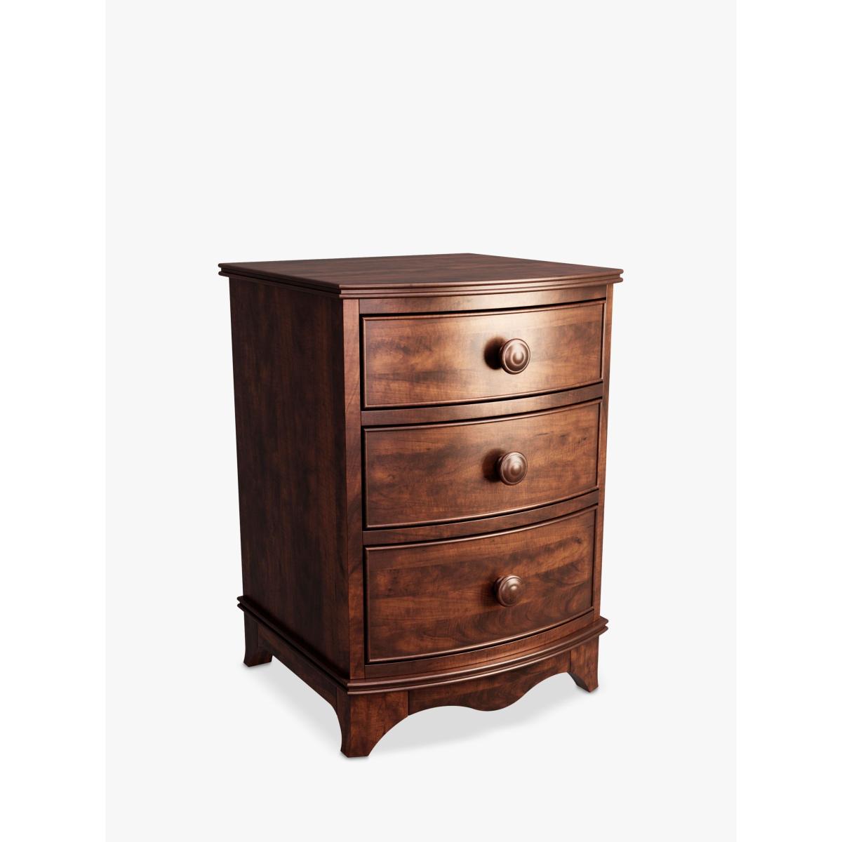 Bedside storage with a stately edge. Crafted from solid birch wood with high-quality birch veneers, this bedside table is made with strong dovetail joints and earns design points for Georgian curves and turned wood details. It's finished in a low maintenance lacquer and three drawers provide all the bedside storage you'll need. Want to see it first? You may want to see and get a feel for the furniture in one of our shops before ordering. We'll be able to tell you where the range you'd like to view is on display.