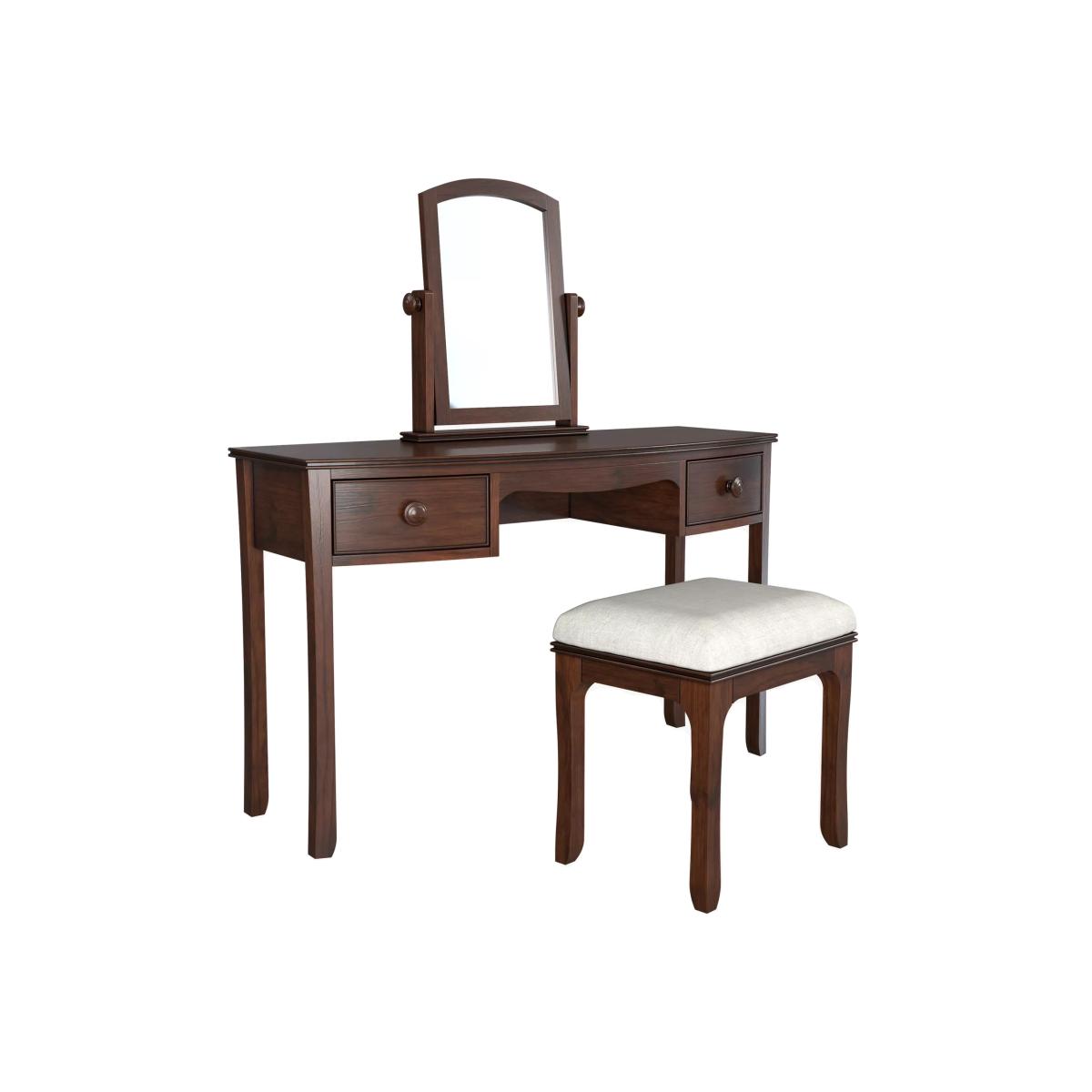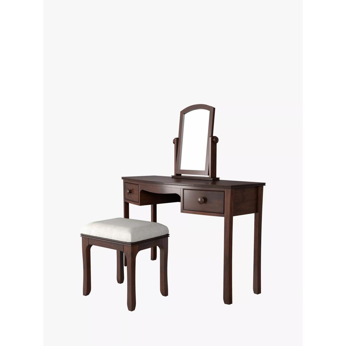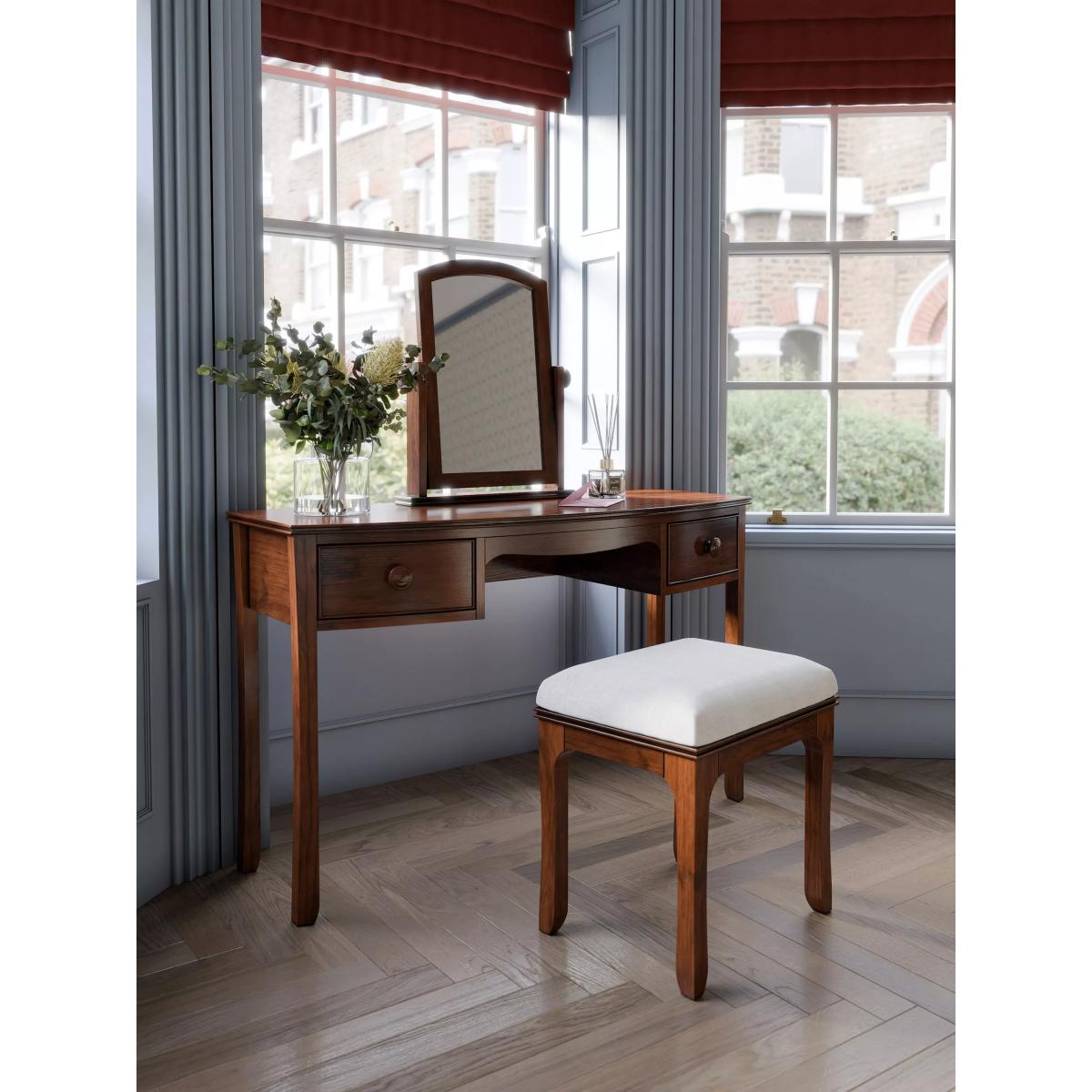 This dressing table set comes with a coordinating mirror and upholstered stool, creating the perfect spot for you to get ready for the day. With its stately Georgian-inspired design, it's crafted from solid birch wood and modern materials in a low-maintenance lacquered finish. Two usefully sized drawers are great for storing jewellery or beauty products, and the mirror can be tilted to the angle you need it. Complete with feature, turned wooden handles that bring together its traditional look. See me in-store It's a good idea to get a feel for new furniture before you make a purchase.