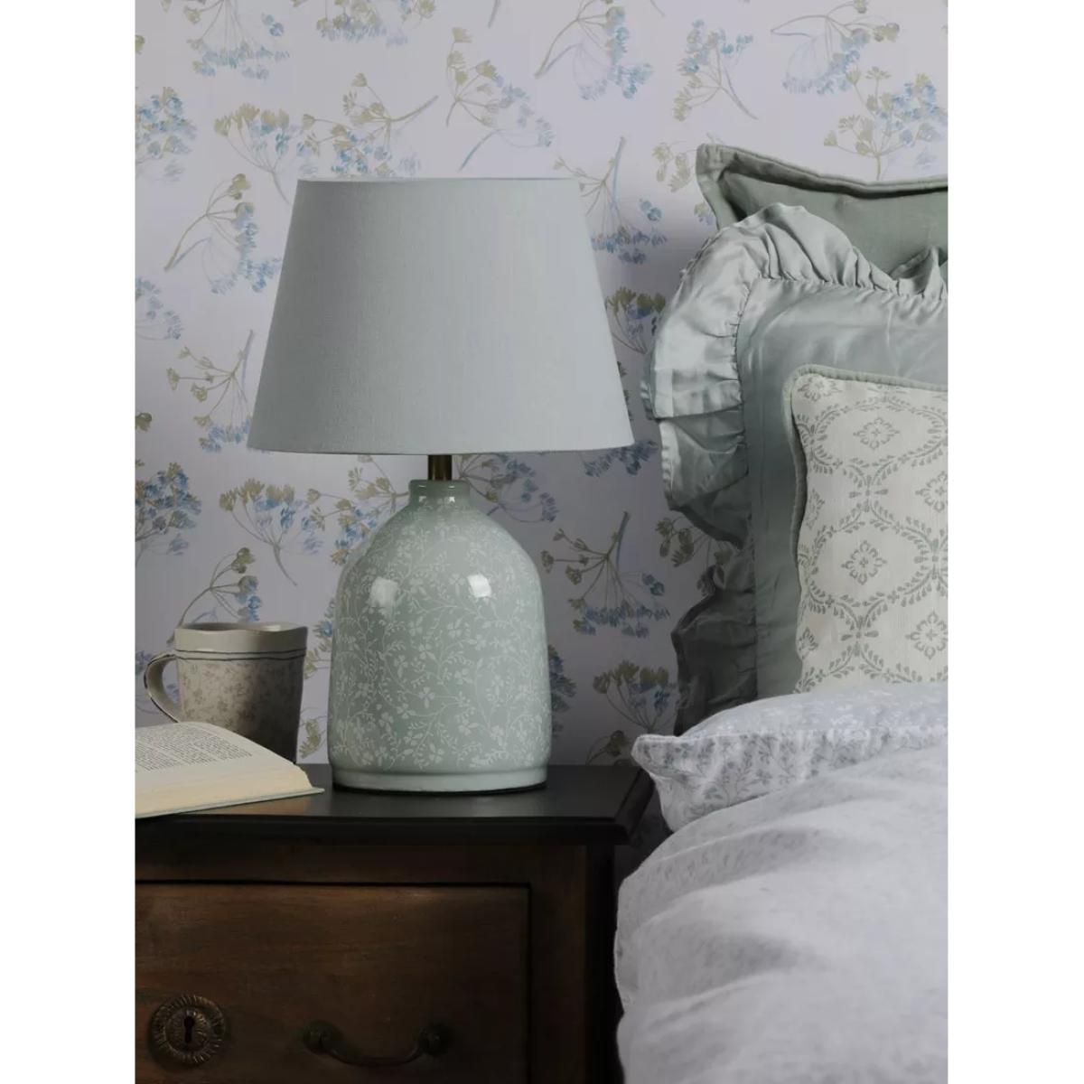 Bring Laura Ashley's signature style into your home with the Campion Table Lamp. This table lamp features the beautiful Campion print, illustrating a stylised floral print with petalled flowers, alongside trailing and curving leafy stems. Its petite size makes it ideal for a bedroom or living room, adding a touch of timeless elegance to your home.