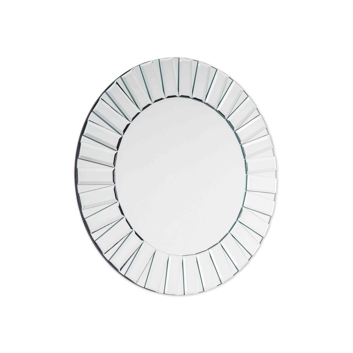 Looking for a statement centrepiece? This beautiful small round mirror features a ‘sunburst’ effect bevelled border that instantly draws the eye. Why you'll love it Beautiful Art Deco-inspired small round mirror. Glamorous ‘sunburst’ effect border. Makes any room feel bigger. Mounted on a sturdy board. What you need to know Made of glass and metal. To clean, apply cleaner to a soft, lint-free cloth and then wipe surface. Wall fixings not included. Dimensions Height: 60 cm (24 in). Width: 60 cm (24 in). Depth: 2 cm (1 in).