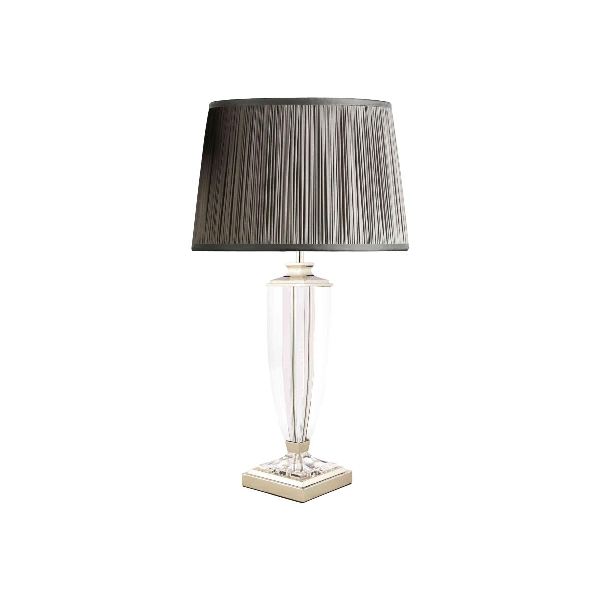 This large table lamp makes an elegant statement thanks to its tapered glass base, nickel-finished metal accents and pleated lampshade. Why you'll love it A large statement table lamp for your elegant home. Tapered vase-shaped cut crystal lamp base. Hand-polished for a perfectly smooth surface. Metal plinth and fittings with a nickel finish. Pleated faux silk silver lampshade. This large table lamp is part of the Laura Ashley lighting collection. What you need to know Mild steel and glass base. Faux silk lampshade. Supplied with 130 cm cable. Requires 1 x BC (B22) GLS max. 60 W bulb (not included). Please do not exceed this wattage. To clean, wipe gently with a soft dry cloth. Do not use polishes or abrasive cleaning products. Disconnect from the power outlet before cleaning or changing the bulb. Dimensions including shade Height: 69 cm (27 in). Diameter: 41 cm (16 in). Item code: LCARTL----001