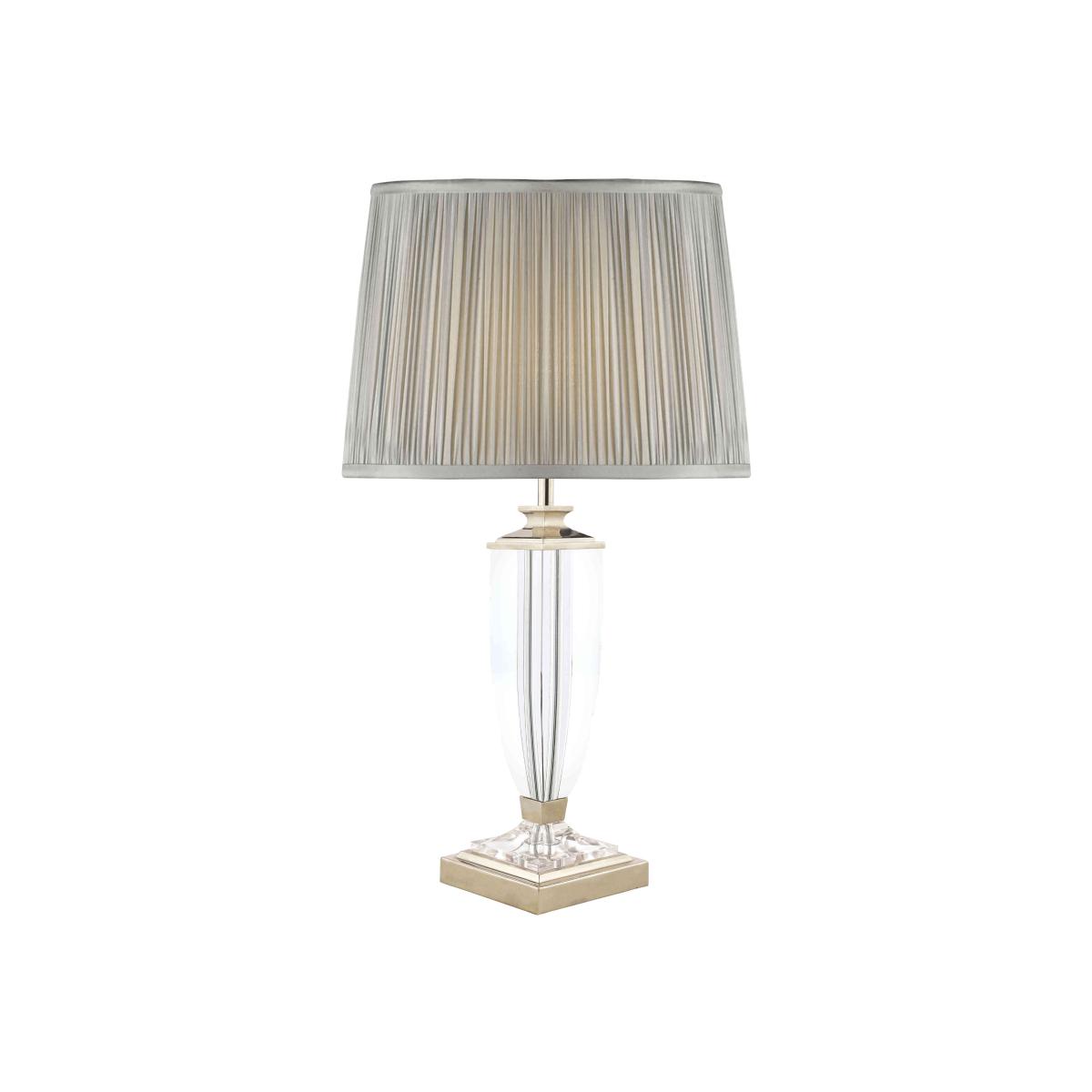 Beautifully detailed and finished, this Laura Ashley table lamp is an elegant statement piece for your home. Its smooth cut crystal base and silver lampshade complement each other perfectly. Why you'll love it A statement table lamp for your elegant home. Tapered vase-shaped cut crystal lamp base. Hand-polished for a perfectly smooth surface. Metal plinth and fittings in vintage nickel or antiqued brass. 100% pleated silk lampshade in silver. This medium-size table lamp is part of the Laura Ashley lighting collection. What you need to know Base is made of mild steel and crystal glass. 100% silk lampshade. Supplied with 150 cm cable. Requires 1 x BC (B22) GLS max. 60 W bulb (not included). Please do not exceed this wattage. To clean, wipe gently with a soft dry cloth. Do not use polishes or abrasive cleaning products. Disconnect from the power outlet before cleaning or changing the bulb. Dimensions including shade Height: 52 cm (21 in). Diameter: 31 cm (13 in).