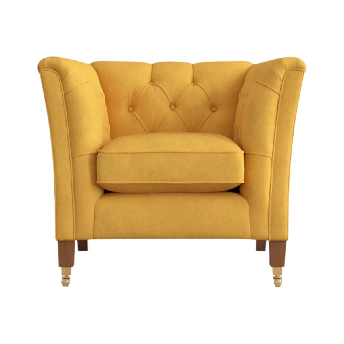 I’m a fan of the Chatsworth armchair for its smart, tufted back and solid teak legs - the mustard-yellow velvet feels both durable and inviting. It slots straight into contemporary, mid-century or even traditional schemes, adding a pop of warm colour without feeling fussy. To style it, position on a neutral or subtly patterned rug to let the hue stand out, then layer with a textured throw or contrast cushion in navy or forest green. Pair with a slim-lined side table and a tall floor lamp to create a cosy reading nook, or flank it with fresh greenery to soften the angles and introduce natural tones.