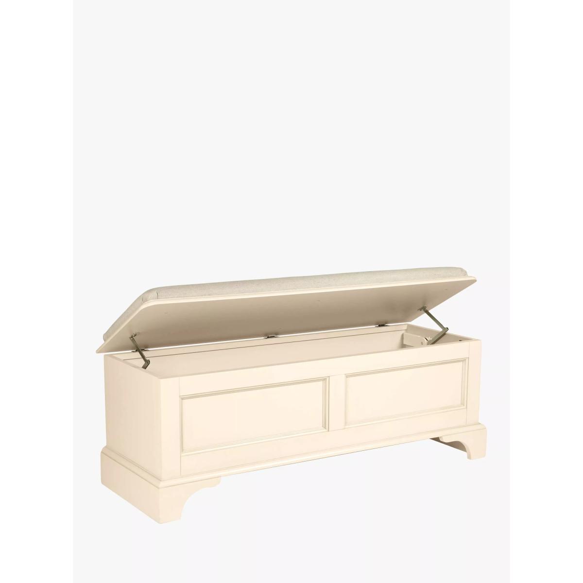 A timeless and elegant storage solution from Laura Ashley, built using solid beech wood with a hand-applied patina to create a unique, aged-effect finish. The lid opens to reveal a spacious storage section and it's covered in soft upholstery in a padded, domed design for comfort. Want to see it first? You may want to see and get a feel for the furniture in one of our shops before ordering. We'll be able to tell you where the range you'd like to view is on display.