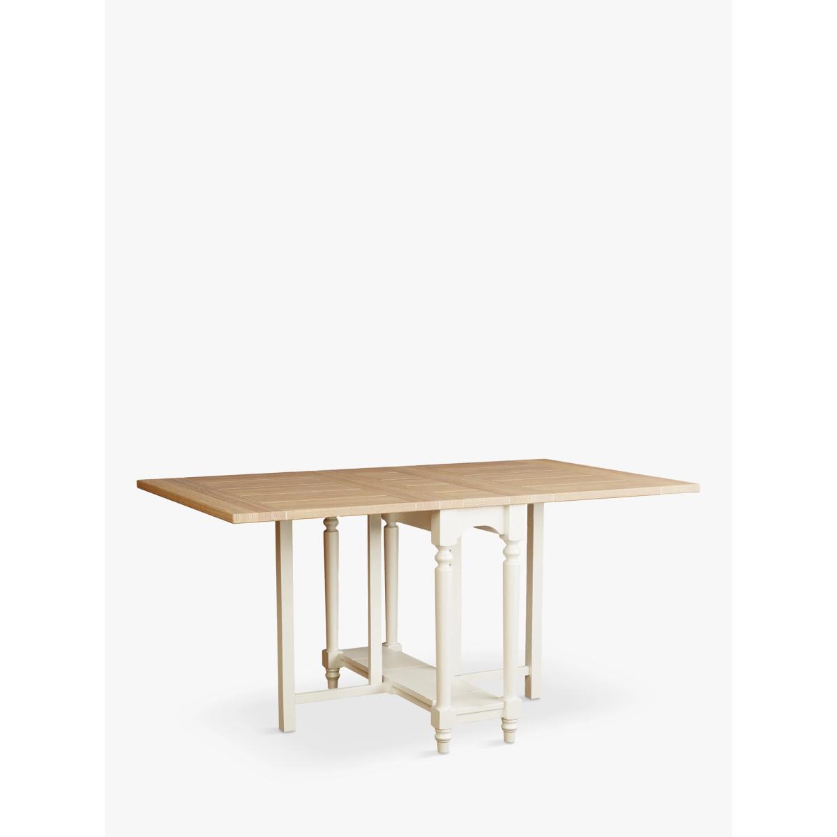 This drop-leaf folding table is a brilliant option if space at home is limited but you still want to entertain. Fold up either one or both extension leaves when you have guests over - up to six people can sit comfortably around the table when it's fully extended. It's made from a combination of tough timbers and hand-finished, with lightly distressed edges adding character. Plus, we love the turned legs which add a classic design detail. Want to see it first? You may want to see and get a feel for the furniture in one of our shops before ordering. We'll be able to tell you where the range you'd like to view is on display.