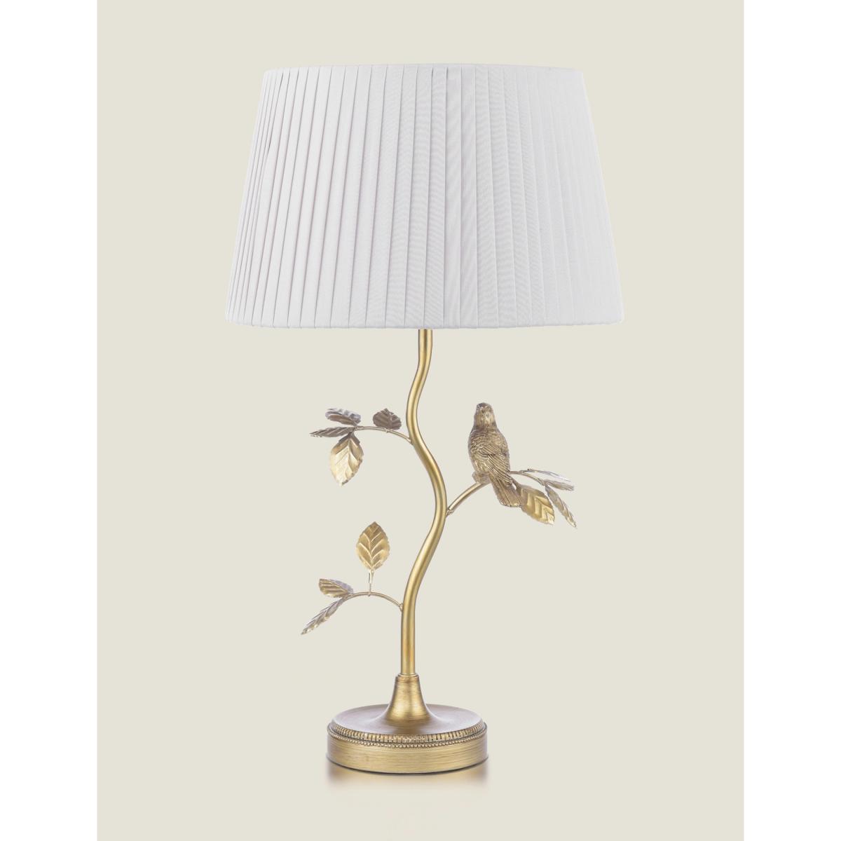 Add a unique light to your space with the Egelton table lamp from Laura Ashley. This charming style has a curved metal stem designed to resemble a tree branch, complete with a delicate little bird and leaves. It's completed with a classic pleated drum shade.