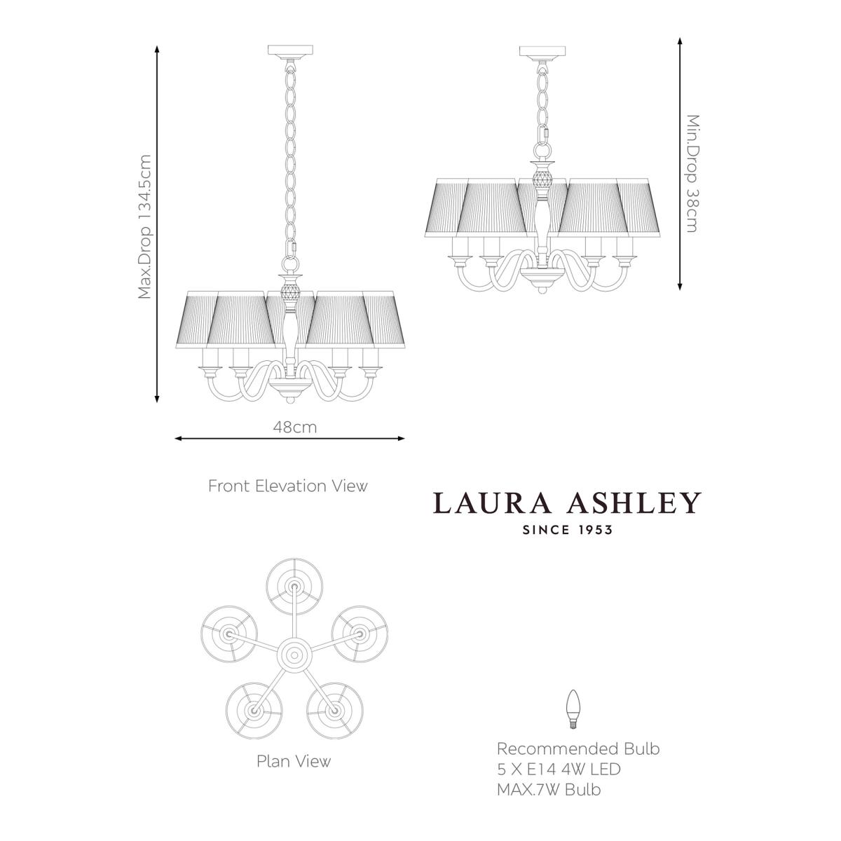 Laura Ashley Ellis Five Arm Pendant Light - Cream, Cream