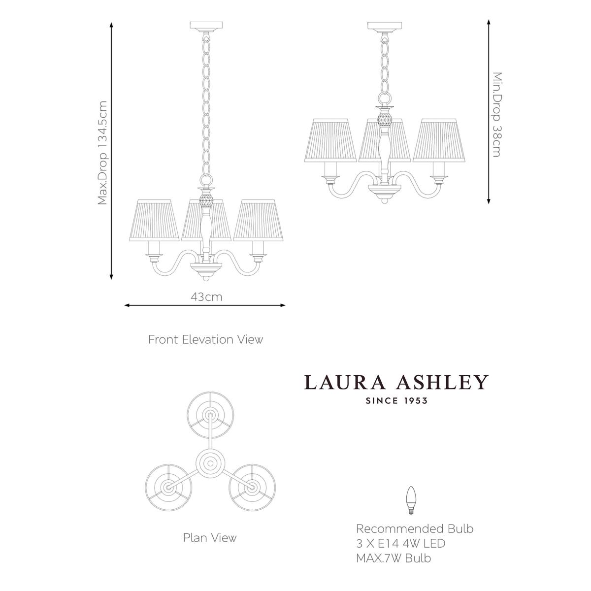 Add a timeless touch to your interiors with this pendant light from Laura Ashley. This elegant design is crafted from steel and features three lamps with stylish pleated fabric shades. A crystal detail in the centre lends a sophisticated finish.