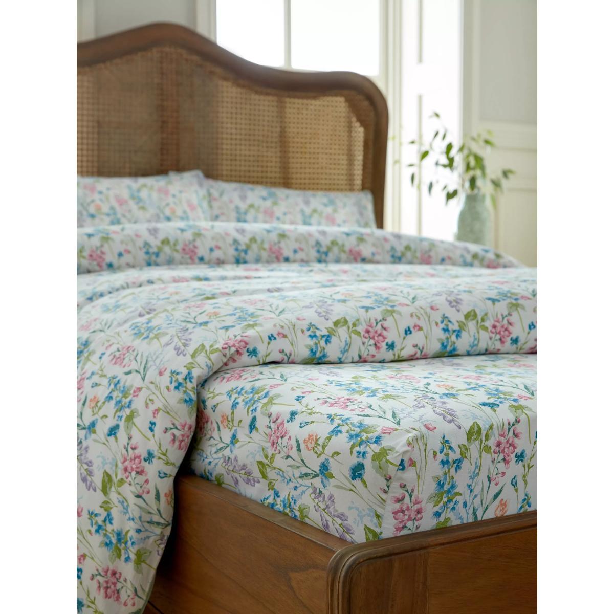Elston Garden showcases a lively watercolour illustration with stylised British wildflowers including harebells and cornflowers. Printed on a luxurious 220 thread count cotton sateen, this ditsy sheet set offers a summery palette, perfect to introduce the outside in. Sheeting sizes To fit mattress size (cm) Single, L190 x W90cm Double, L190 x W135cm King, L200 x W150cm Super king, L200 x W180cm