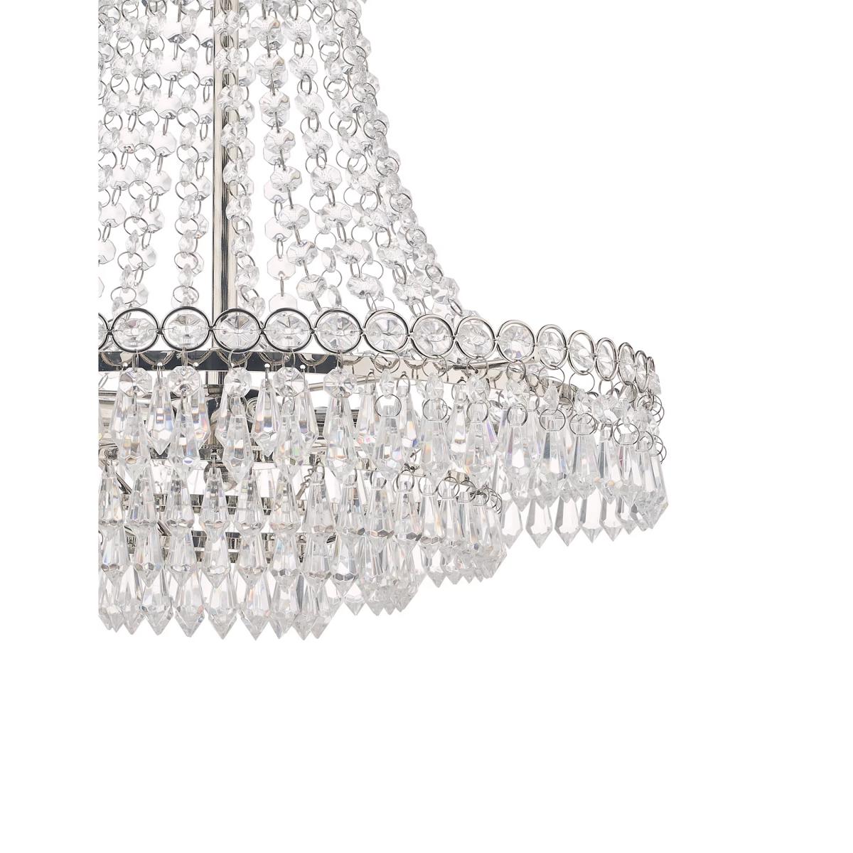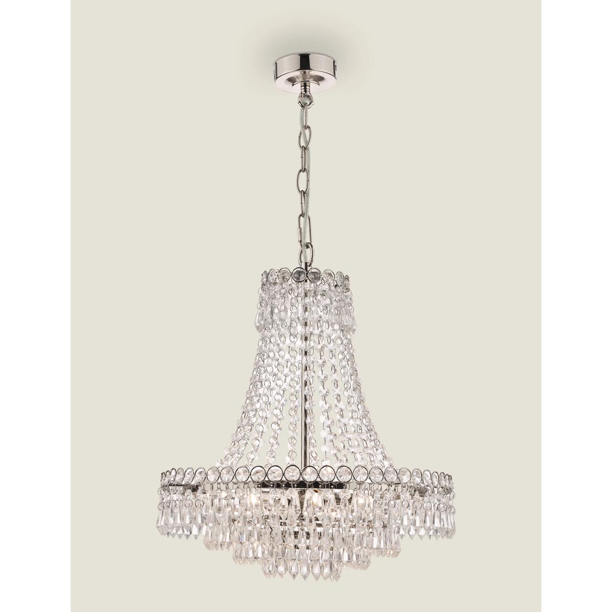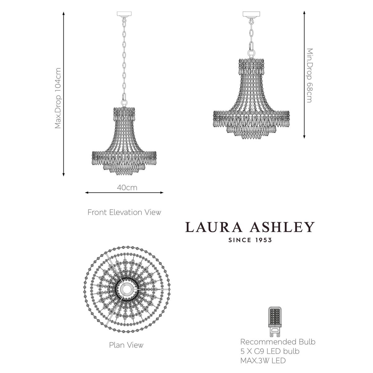 Bring a statement look to your home with this chandelier from Laura Ashley. The design features a metal frame with a polished nickel finish for contemporary appeal. This is complemented by strings of cut glass crystal droplets, which provide a timeless feel. The drop of the ceiling pendant can be adjusted to suit your interior.