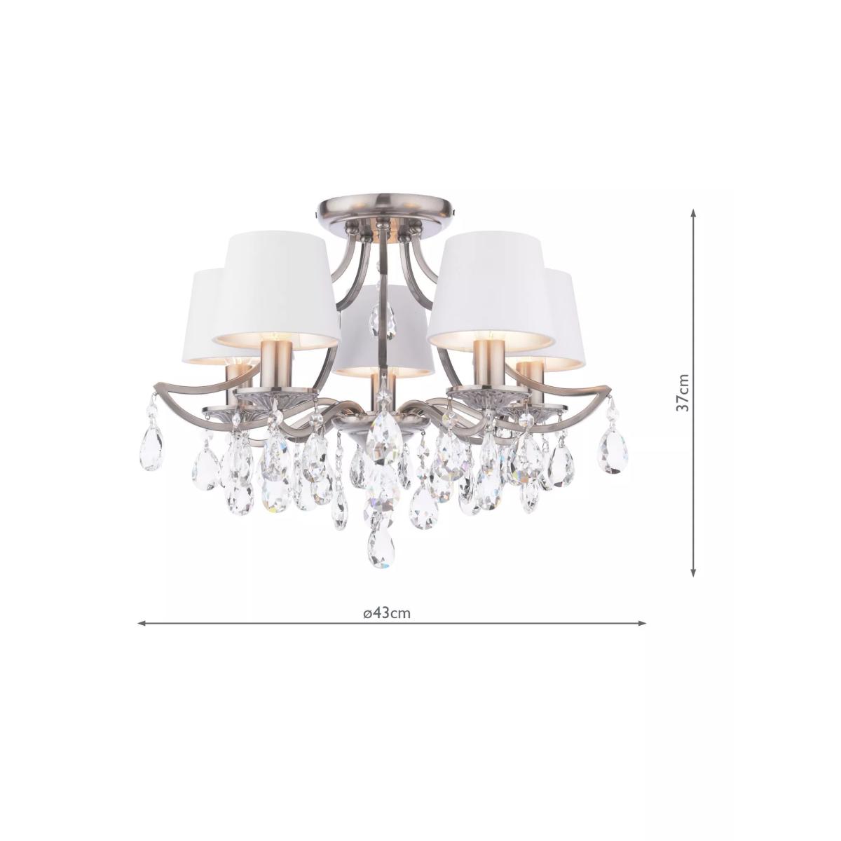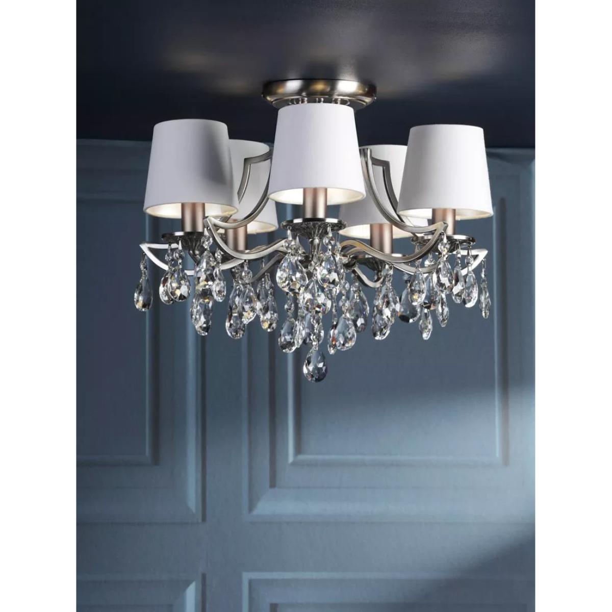 Laura Ashley Enstone 5 Arm Semi-Flush Ceiling Chandelier, Polished Nickel/Ivory