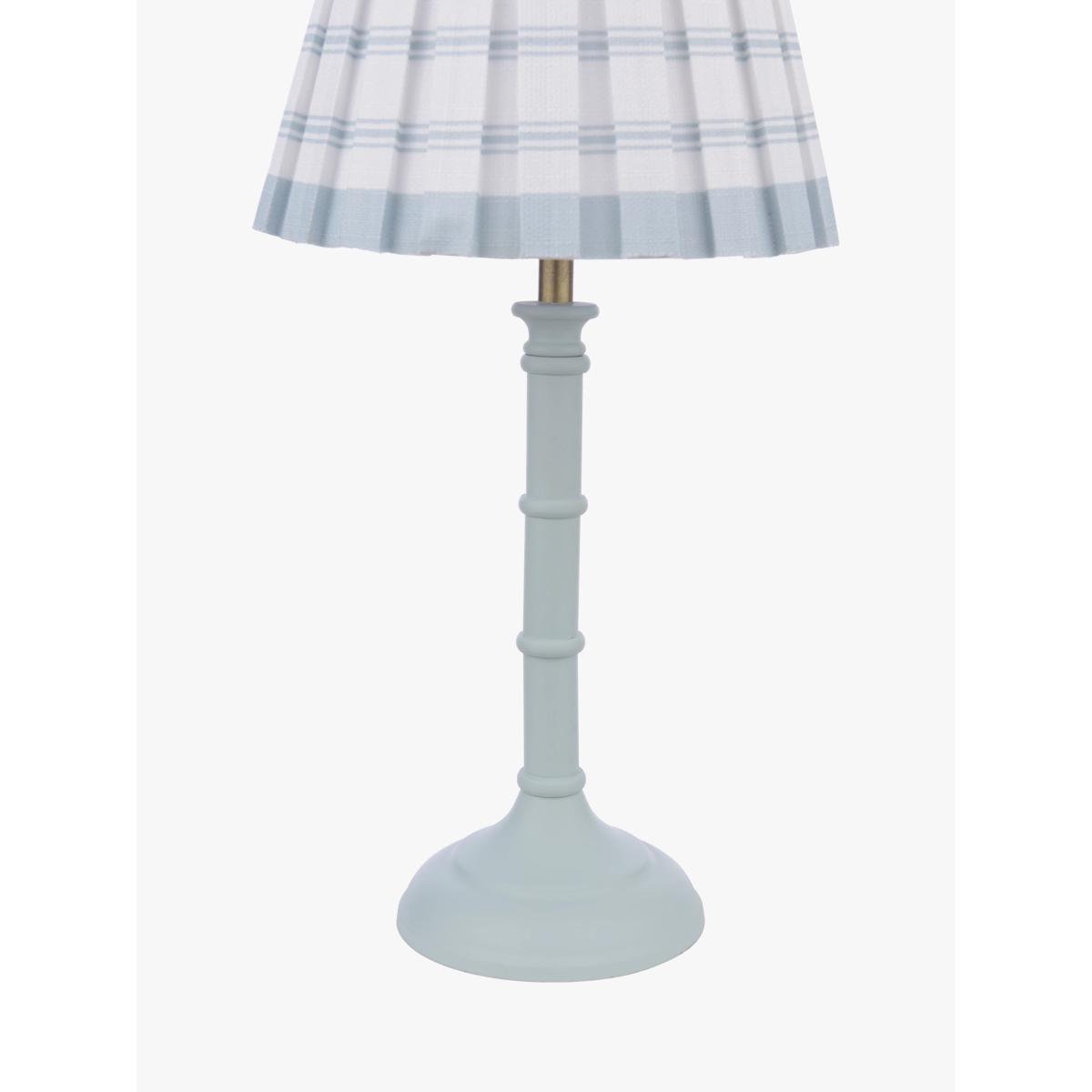 The Farnworth Table Lamp by Laura Ashley features a green base paired with an off-white pleated fabric lampshade that creates a warm glow of light. Bulb not included. Takes a 40W E14 (SES) bulb. We recommend using LED bulbs as they are more energy efficient, typically last at least 15000 hours and use 90% less energy than a traditional halogen bulb. Less energy means lower electricity costs.