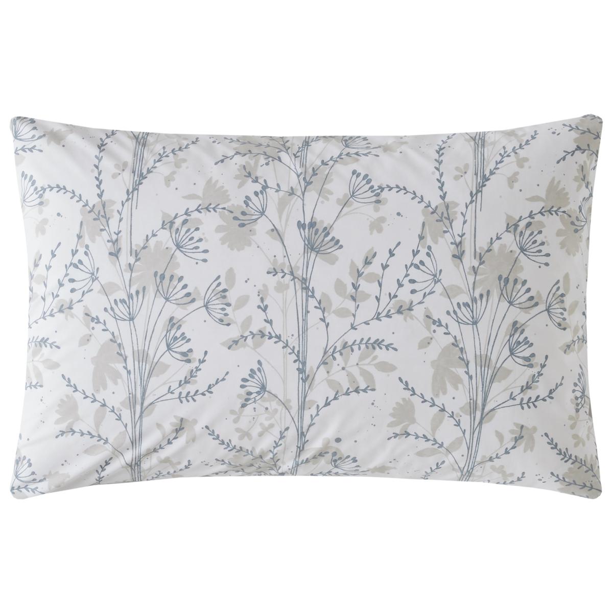 Complete your bedding ensemble with the Laura Ashley Fennelton Pillowcase Pair in Cream/Blue, showcasing a delicate botanical pattern that adds a touch of elegance and charm to your bedroom decor. Inspired by a British country lane scene, hand-painted silhouettes of cow parsley and seed heads decorate this 200T. C cotton percale bedding, in a warm palette of creams and chalk blue. A co-ordinating painterly stripe reverse creates a relaxed look. Features: 200 Thread Count 100% Cotton Percale  Textured Stripe Reverse Care Instructions: Machine Washable Please note All screens vary in colour reproduction and whilst every effort has been made to display the colour as accurately as possible it is for guidance only.