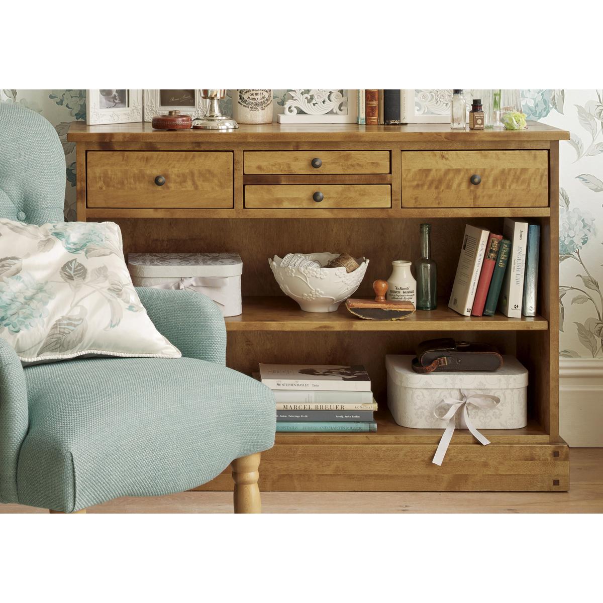 Discover the Laura Ashley Garrat range – a timeless collection of expertly crafted furniture made from solid birch. With its warm finishes, antique brass-finish handles and classic design, each piece adds charm and practicality to your home. Whether you’re updating your dining room, living space or hallway, Garrat offers elegant storage and style to suit every setting. Available in chestnut and honey finishes to suit your space. This understated 4 drawer console table from Laura Ashley Garrat adds stylish storage to any hallway, living room or entryway. Why you'll love it A chic and simple 4 drawer console table by Laura Ashley. Crafted with care from solid birch. Four spacious drawers for everyday essentials. Slim profile fits narrow spaces. Antique brass-finish handles add charm. Available in two finishes: chestnut or honey. Part of the Laura Ashley Garrat collection. What you need to know Made from solid birch. Soft-close drawers. Wipe clean with a damp cloth. We recommend using coasters and placemats at all times. Item code: LAG-CONSCHE-001