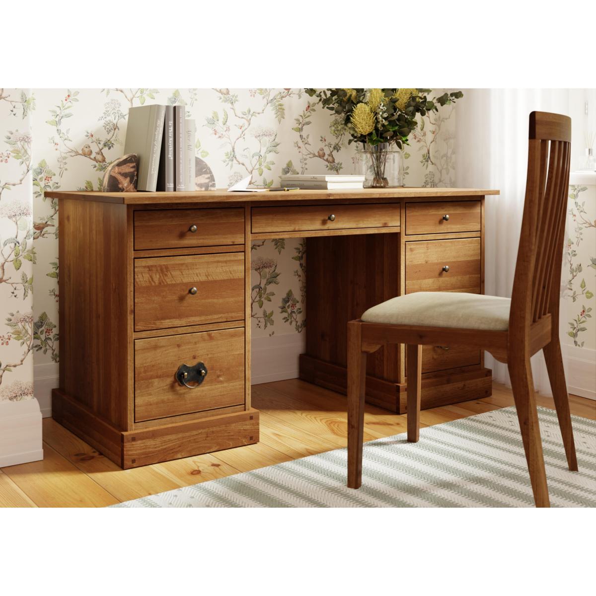 Discover the Laura Ashley Garrat range – a timeless collection of expertly crafted furniture made from solid birch. With its warm finishes, antique brass-finish handles and classic design, each piece adds charm and practicality to your home. Whether you’re updating your dining room, living space or hallway, Garrat offers elegant storage and style to suit every setting. Available in chestnut and honey finishes to suit your space. Upgrade your home office with this timeless 7 drawer desk from Laura Ashley. It brings classic workspace style to any space plus extensive storage for all your files, stationery and more. Why you'll love it A classic 7 drawer desk designed by Laura Ashley. Crafted with care from solid birch. Five small drawers and two larger ones for flexible storage. Comfortable writing surface with simple guard rail. Available in two finishes: chestnut or honey. Part of the Laura Ashley Garrat collection. What you need to know Made from solid birch and birch veneers. Soft-close drawers. Wipe clean with a damp cloth. We recommend using coasters and placemats at all times. Item code: LAG-DESKCHE-001