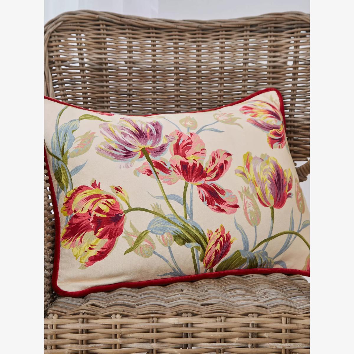 The Gosford print is a bold tulip design with an almost handpainted feel to it. It's the perfect accessory for more traditional interiors. The design is printed onto 100% cotton velvet with a piped edge, giving a sense of luxurious grandeur.