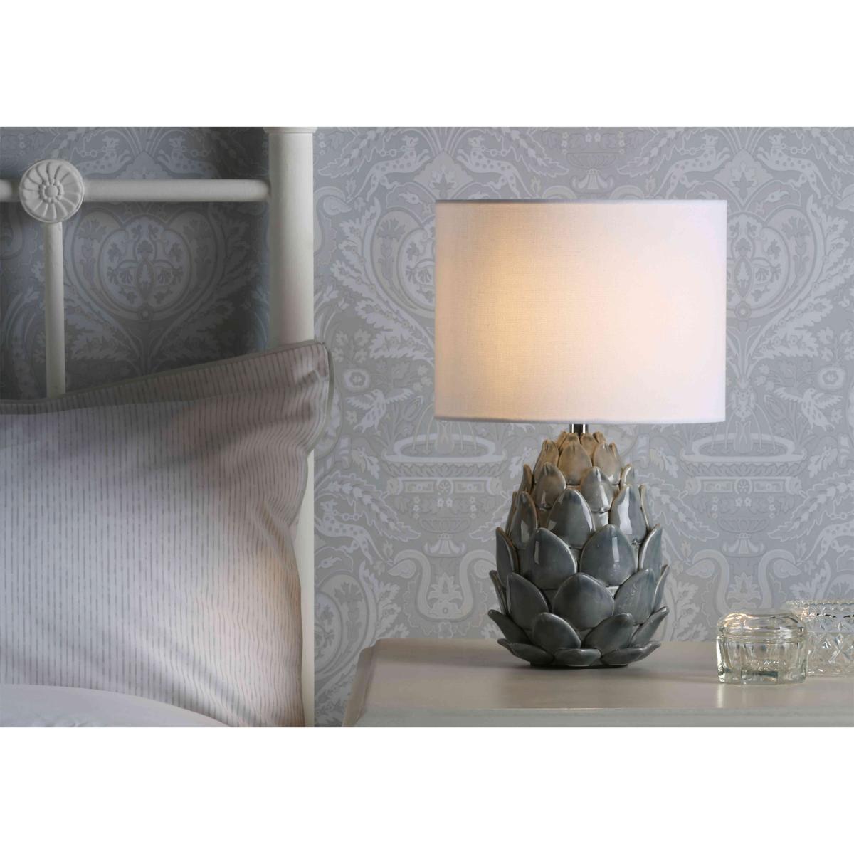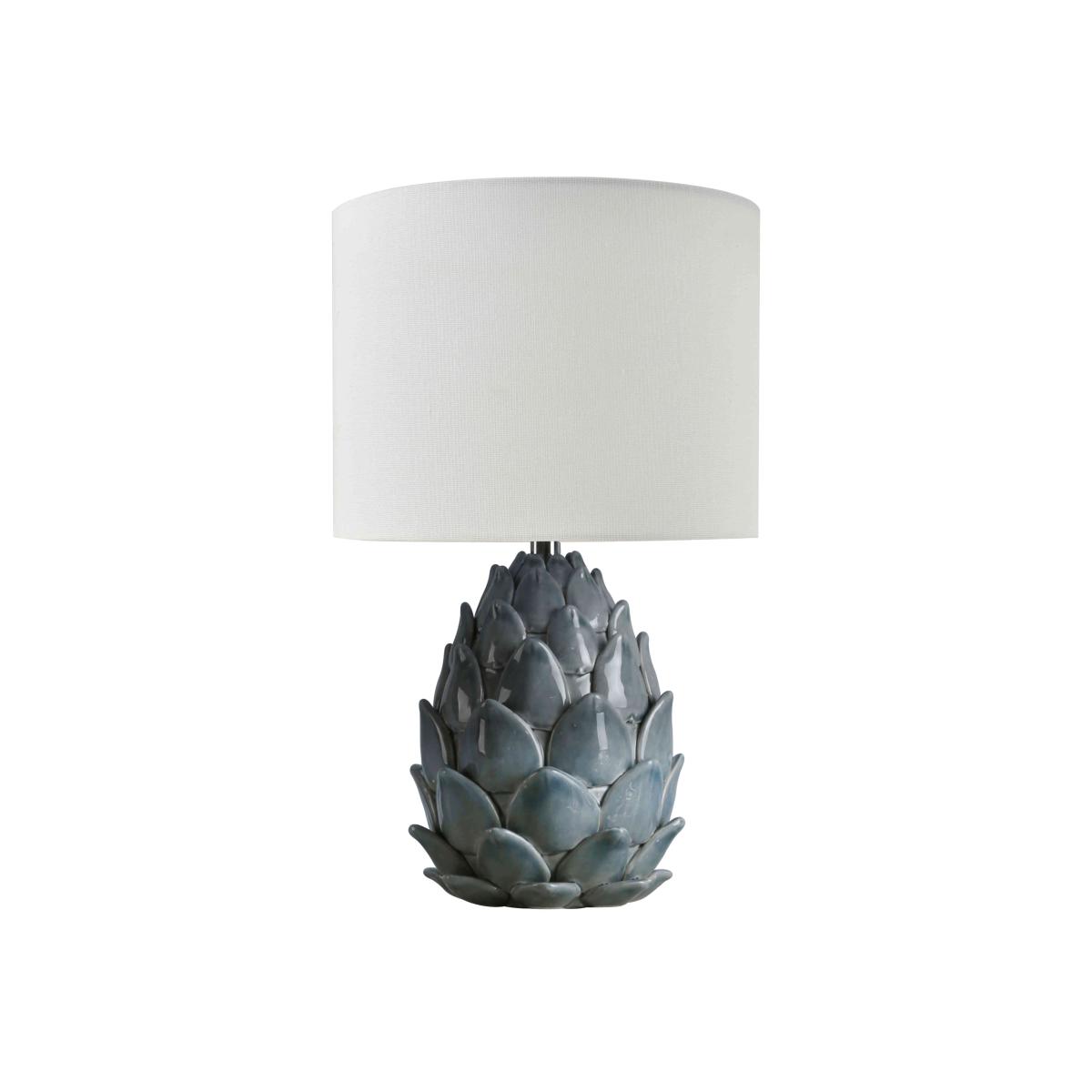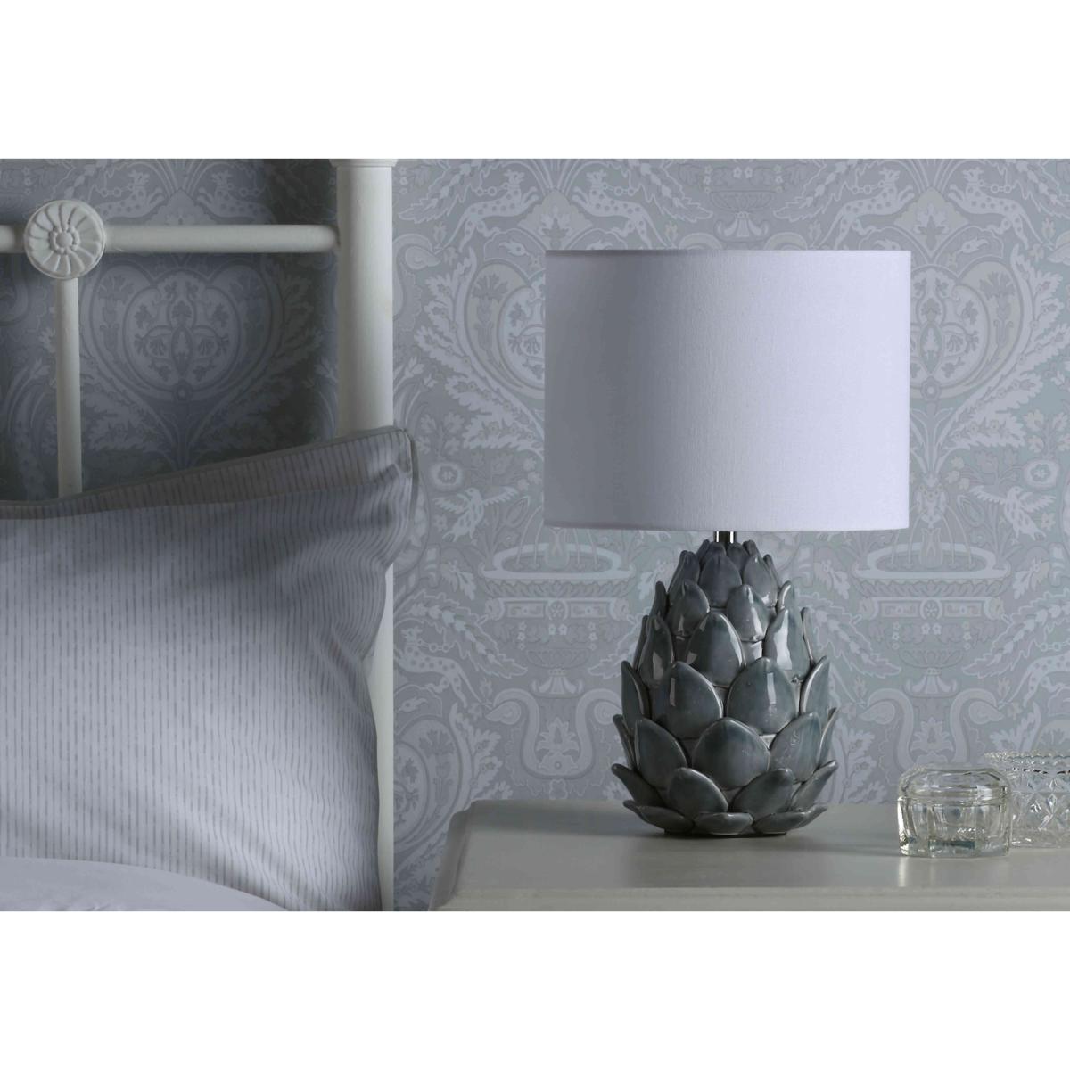 This gorgeous table lamp, part of our Laura Ashley range, is a three-dimensional masterpiece that renders water lily petals in ceramic. Why you'll love it Statement table lamp is beautiful in every way. Base takes the form of water lily petals on the verge of unfurling. Ceramic with a soft blue glaze. Ivory linen drum-shaped lampshade. This table lamp is part of the Laura Ashley lighting collection. What you need to know Ceramic. Linen lampshade. Supplied with 150 cm cable. Requires 1 x E14 (SES) max. 40 W bulb (not included). Please do not exceed this wattage. To clean, wipe gently with a soft dry cloth. Do not use polishes or abrasive cleaning products. Disconnect from the power outlet before cleaning or changing the bulb. Dimensions including shade Height: 40 cm (16 in). Diameter: 24 cm (10 in).