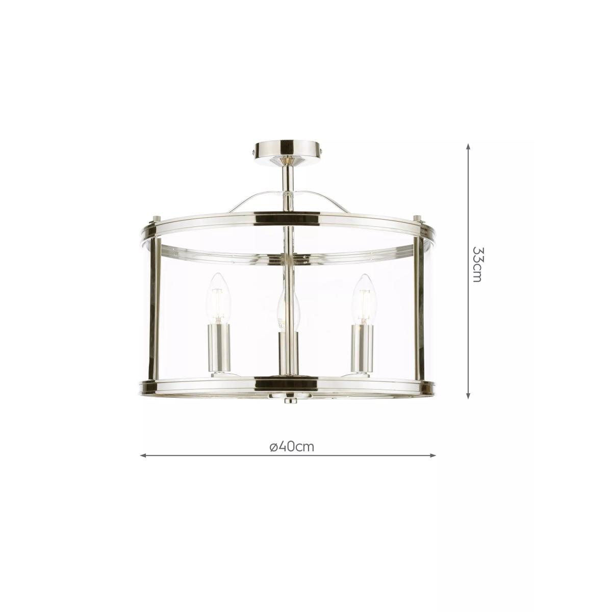 Laura Ashley Harrington 3 Bulb Semi Flush Ceiling Pendant Light, Polished Nickel