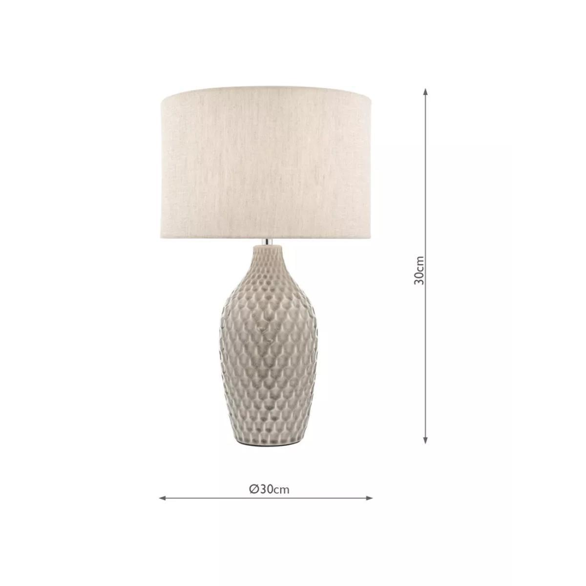 If you want to accessorise your space but want to keep colours natural and muted, try introducing texture. This table lamp will help you achieve that, thanks to the tactile honeycomb design on its crackle-glazed ceramic base. Its simple bottle shape is softly curved and complements the natural linen drum lampshade perfectly. One LED bulb is required.