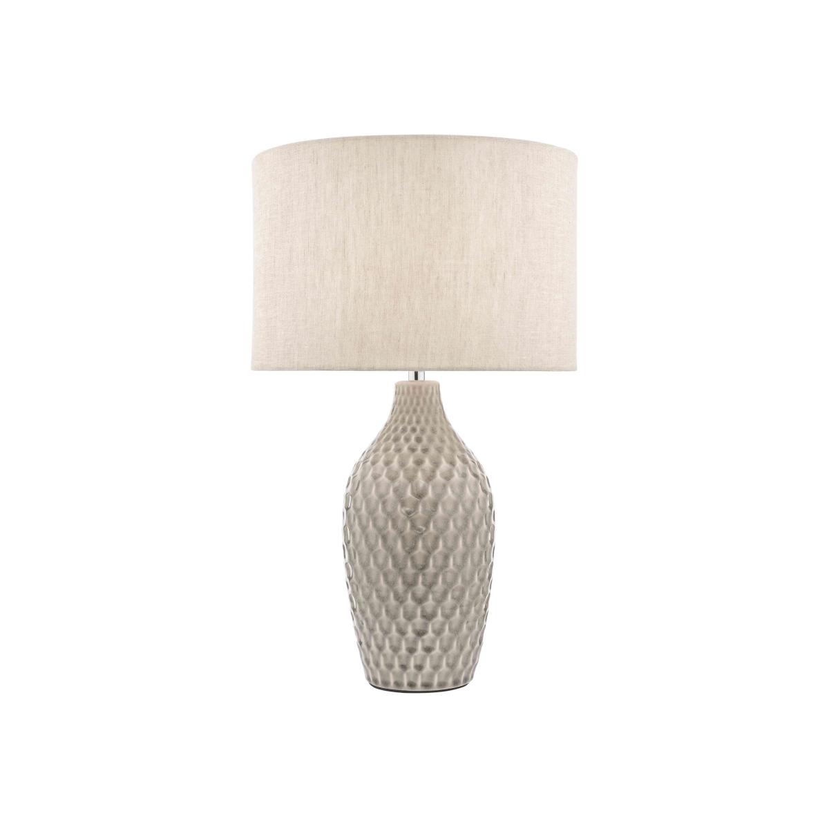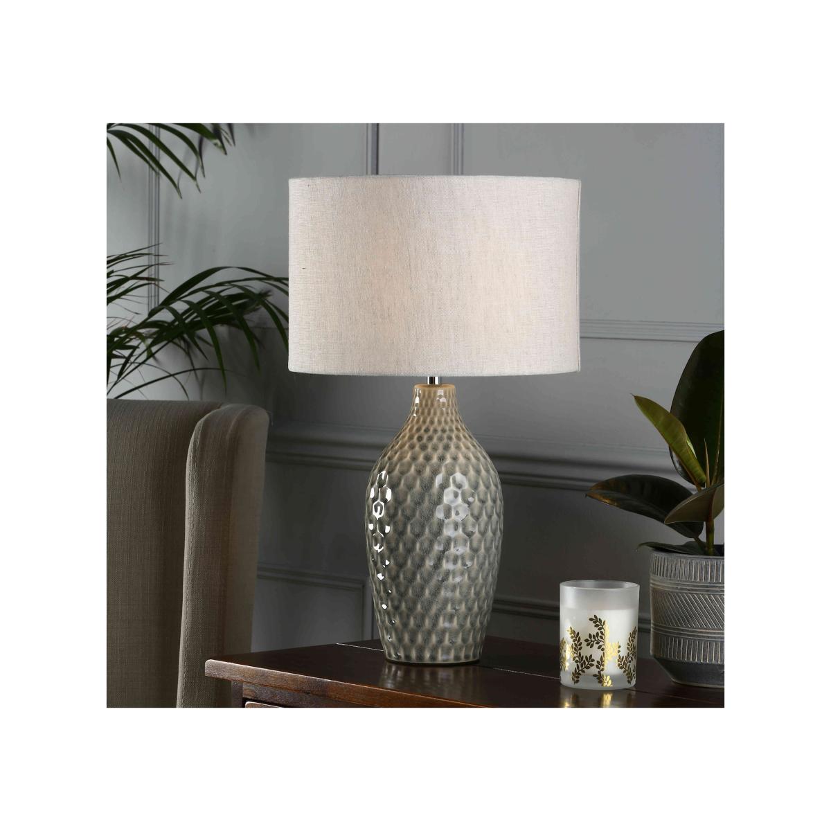 Introduce texture and style to any room with this lovely ceramic table lamp complete with neutral linen lampshade. Part of the Laura Ashley lighting collection. Why you'll love it A versatile and stylish table lamp that’s perfect in any room. Classic bottle-shaped ceramic base with tactile honeycomb finish. Crackle glaze in grey. Natural linen lampshade silk. This grey table lamp is part of the Laura Ashley lighting collection. What you need to know Ceramic base. Linen lampshade. Supplied with 130 cm cable. Requires 1 x E14 (SES) GLS max. 40 W bulb (not included). Please do not exceed this wattage. To clean, wipe gently with a soft dry cloth. Do not use polishes or abrasive cleaning products. Disconnect from the power outlet before cleaning or changing the bulb. Dimensions including shade Height: 51 cm (21 in). Diameter: 30 cm (12 in). Item code: LAHETL----001