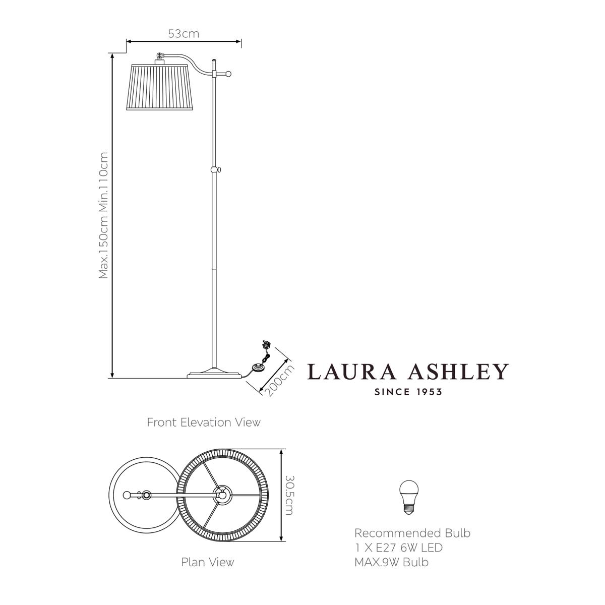 Laura Ashley Hemsley Metal Floor Lamp - Antique Brass, Antique Brass