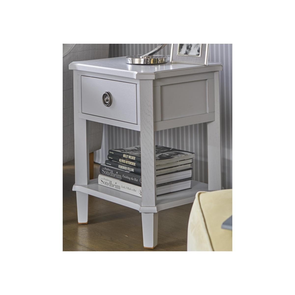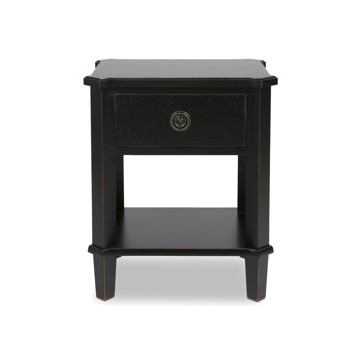 Discover the enduring vintage charm of the Laura Ashley Henshaw range. This beautifully painted collection features sideboards, console tables, TV units, chests, coffee tables, nests and more. Each piece is carefully crafted from solid wood with quality veneers and finished in a choice of two stylish shades with a delicate distressed finish. Understated brass-effect ring handles bring refined detail while adjustable shelving and spacious drawers offer plenty of flexible storage for every room of your home. Whether styled in your hallway, lounge, bedroom or dining room, this range blends timeless charm with effortless functionality. Small but stylish, this vintage-inspired 1 drawer side table by Laura Ashley is the perfect companion to your bed or sofa. Why you'll love it Timelessly stylish 1 drawer side table by Laura Ashley. Crafted from solid oak and oak veneers. Beautiful vintage-style painted finish. Distressed brass-effect handles add character. One drawer for your remotes and magazines. Available in two classic finishes: black or pale steel. Part of the Laura Ashley Henshaw collection. What you need to know Made from solid oak with oak veneers. Wipe clean with a damp cloth. We recommend using coasters and placemats at all times. Item code: LAH-STBLBLK-001