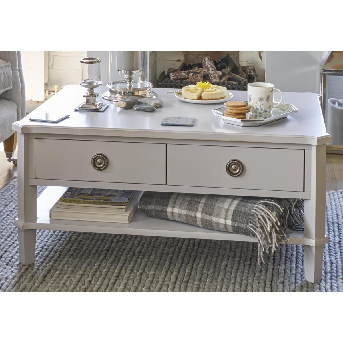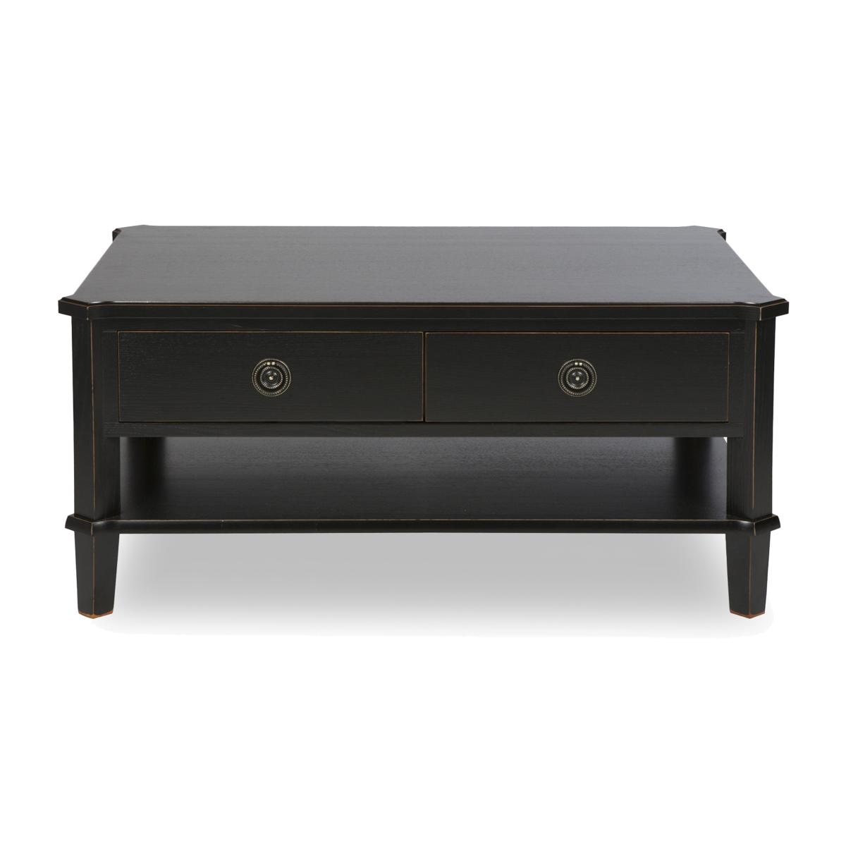 Discover the enduring vintage charm of the Laura Ashley Henshaw range. This beautifully painted collection features sideboards, console tables, TV units, chests, coffee tables, nests and more. Each piece is carefully crafted from solid wood with quality veneers and finished in a choice of two stylish shades with a delicate distressed finish. Understated brass-effect ring handles bring refined detail while adjustable shelving and spacious drawers offer plenty of flexible storage for every room of your home. Whether styled in your hallway, lounge, bedroom or dining room, this range blends timeless charm with effortless functionality. This painted 2 drawer coffee table by Laura Ashley effortlessly combines style and functionality, making it the perfect addition to your living room. Why you'll love it A timeless 1 drawer side table by Laura Ashley that suits any interior. Crafted from solid oak and oak veneers. Beautiful vintage-style painted finish. Distressed brass-effect handles add character. Two drawers to keep items organised. Available in two classic finishes: black or pale steel. Part of the Laura Ashley Henshaw collection. What you need to know Made from solid oak with oak veneers. Wipe clean with a damp cloth. We recommend using coasters and placemats at all times. Item code: LAH-CT--BLK-001