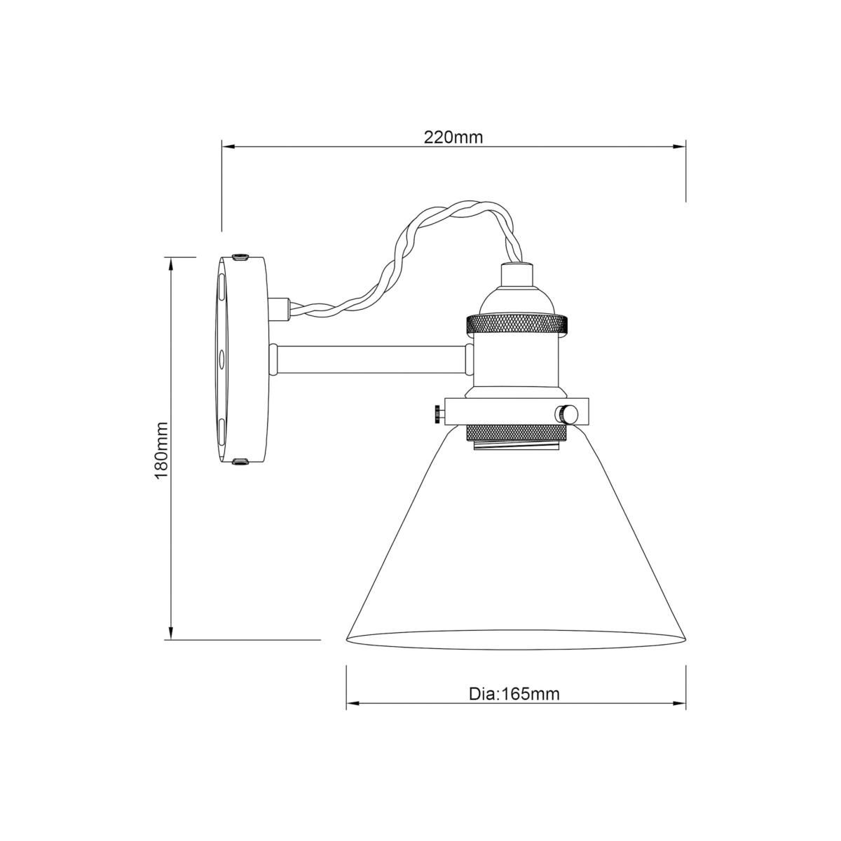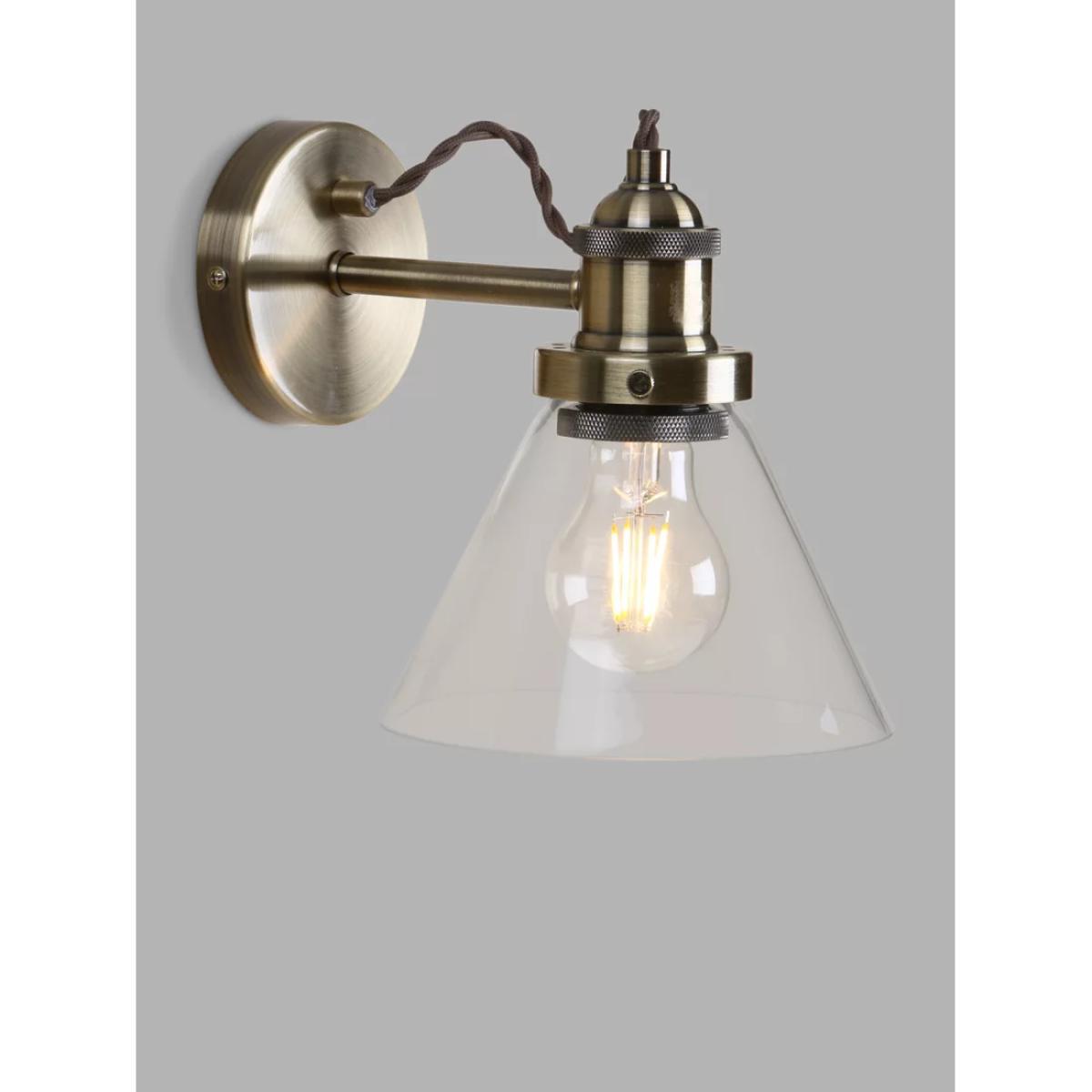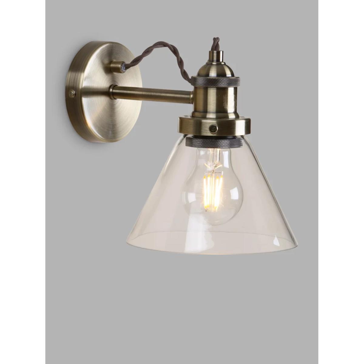 This modern-industrial wall light features a cone-shaped glass shade and metal wall bracket. Available in a choice of finishes, it's a great choice for kitchens, dens and even bedrooms. One LED bulb is required and we think a retro bulb with a decorative filament will complete the look.