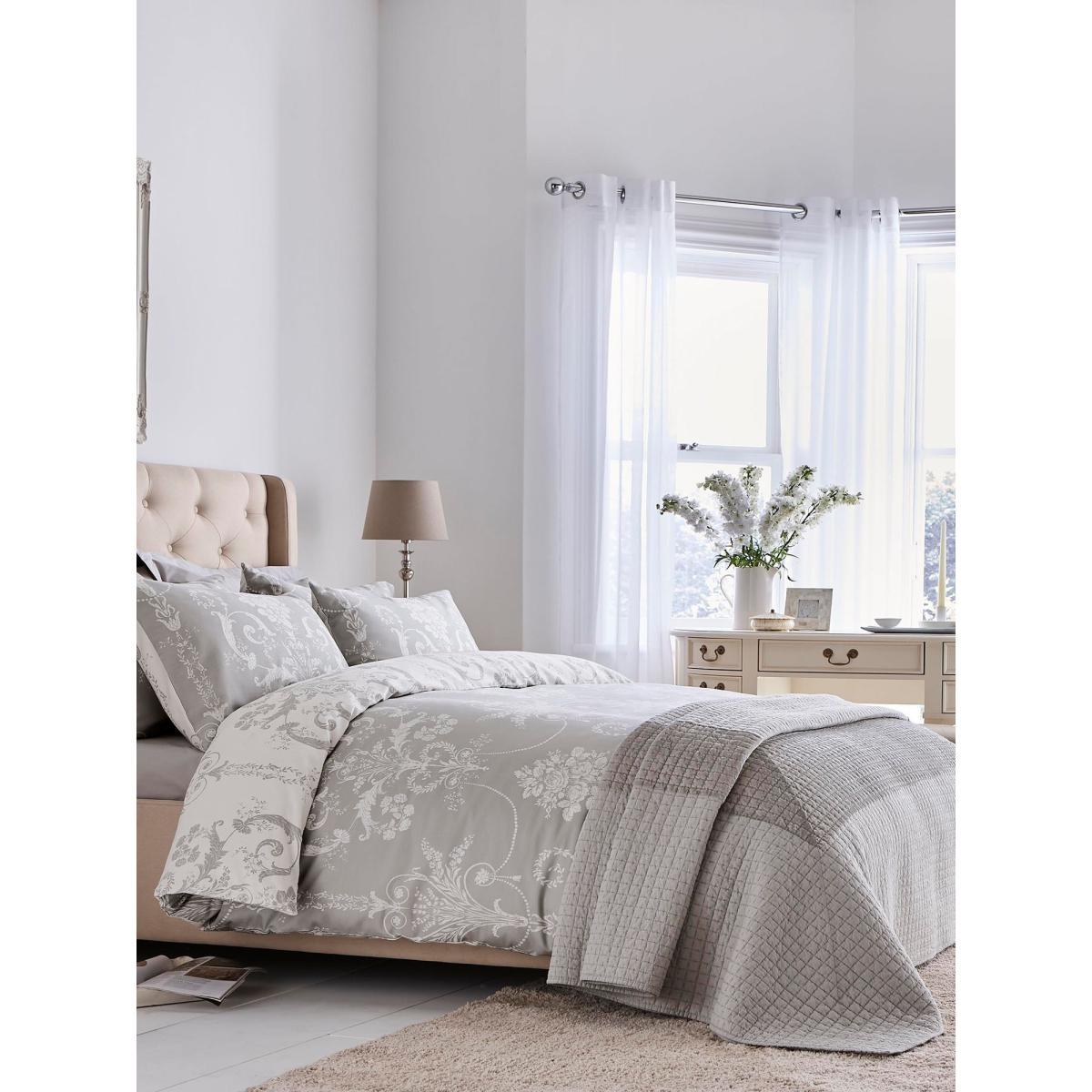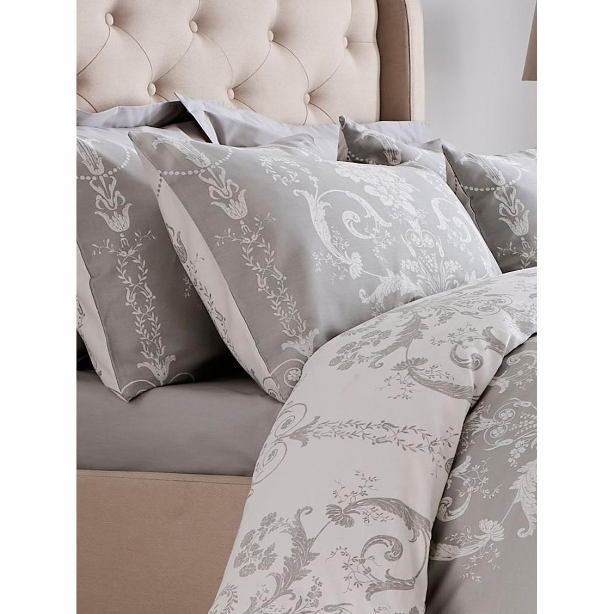 With its subtle curlicue florals inspired by 18th century France, the luxurious Josette bedlinen in Steel brings a touch of chateau elegance to the bedroom and is reversible so that you can style it two ways. Made from pure cotton, this Laura Ashley duvet cover set comes complete with 2x coordinating pillowcases. Have you thought about sheeting? Shop here. Bedding sizes To fit duvet/pillow size (cm) Standard pillowcase, L75 x W50cm Double duvet cover, L200 x W200cm King duvet cover, L220 x W225cm Super king duvet cover, L220 x W260cm
