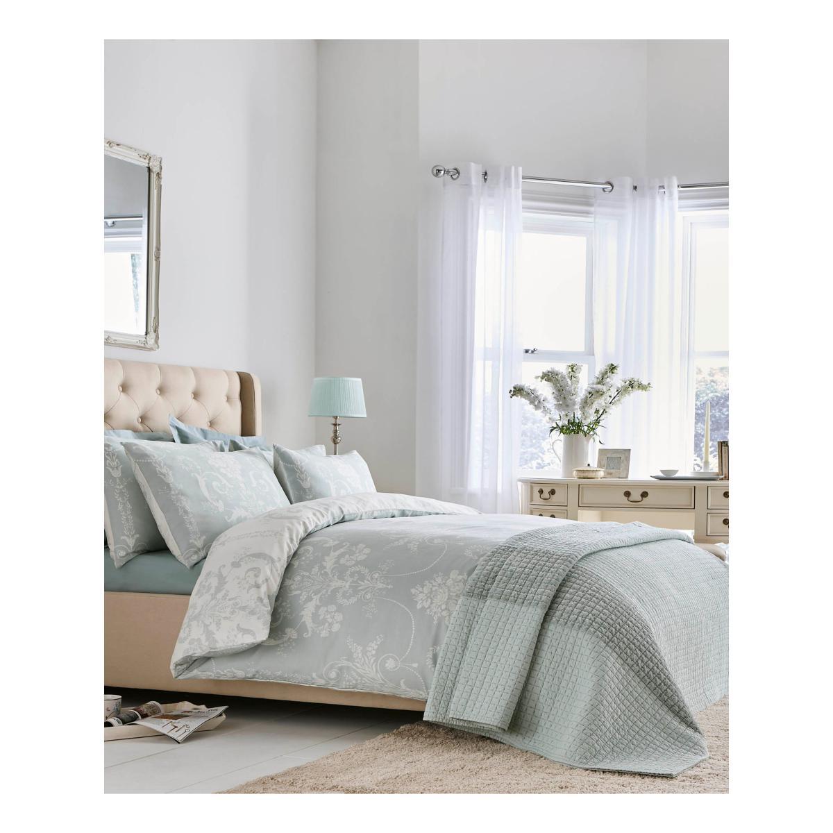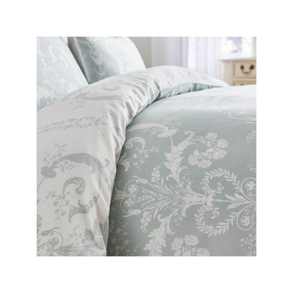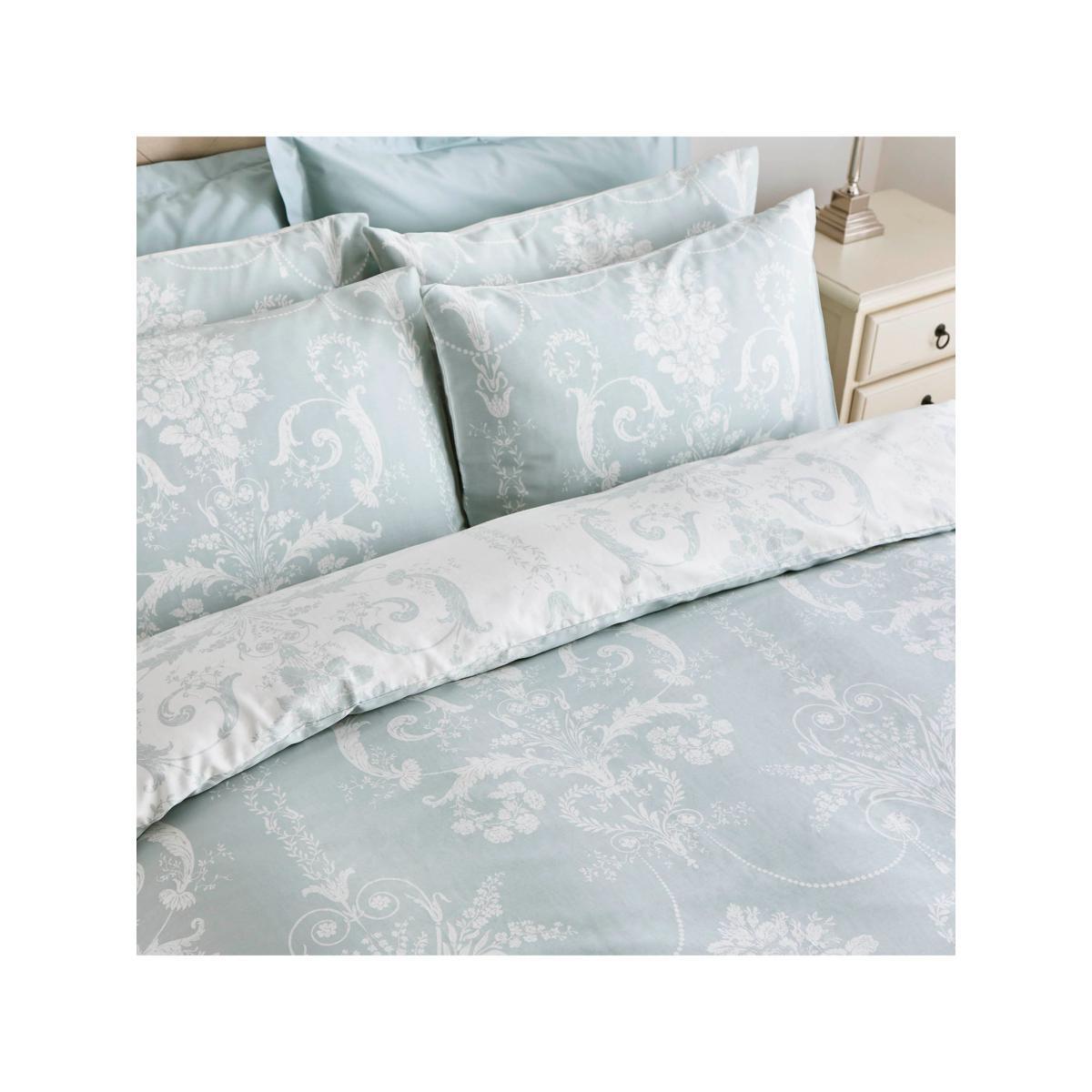 With its subtle curlicue florals inspired by 18th century France, the luxurious printed Josette bed linen - printed on pure, 200 thread count cotton sateen - brings a touch of chateau elegance to the bedroom. This Laura Ashley duvet cover set is reversible so that you can style it two ways. Each set comes with 2x standard pillowcases. Have you thought about sheeting? Shop here. Bedding sizes To fit duvet/pillow size (cm) Standard pillowcase, L75 x W50cm Double duvet cover, L200 x W200cm King duvet cover, L220 x W225cm Super king duvet cover, L220 x W260cm