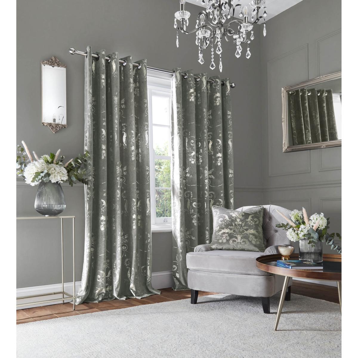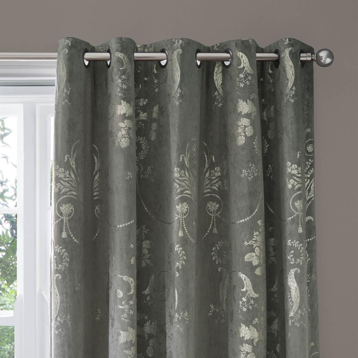 Bring a sense of grandeur and opulence into your home with the Laura Ashley Josette Eyelet Curtains in Metallic Steel. Featuring a decorative damask design foil printed onto sumptuous velvet fabric, these curtains exude timeless elegance and sophistication. Features Foil Printed. Eyelet Header. Fully Lined Pair Composition: 100% Polyester Face, 100% Polyester Lining Care Instructions Dry Clean Only Please note All screens vary in colour reproduction and whilst every effort has been made to display the colour as accurately as possible it is for guidance only.