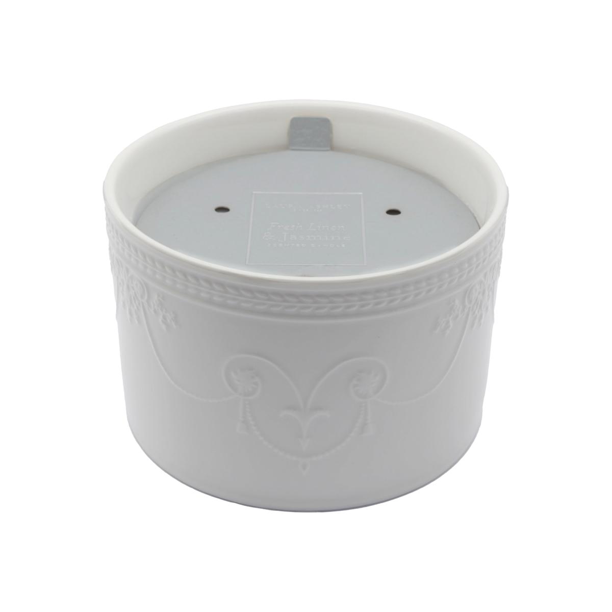 Housed in a ceramic damask jar and diffusing a soft, gentle scent, this three-wick candle from Laura Ashley looks as beautiful as it smells. Inspired by fresh linen, the fragrance opens with an elegant blend of jasmine, orange flower and rose. A vanilla and musk base brings subtly sweet, rich depth to the profile.
