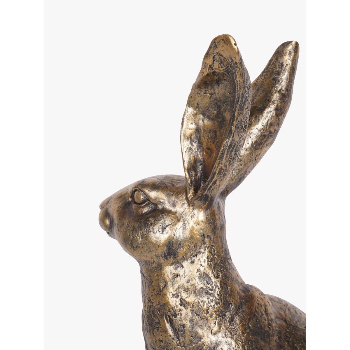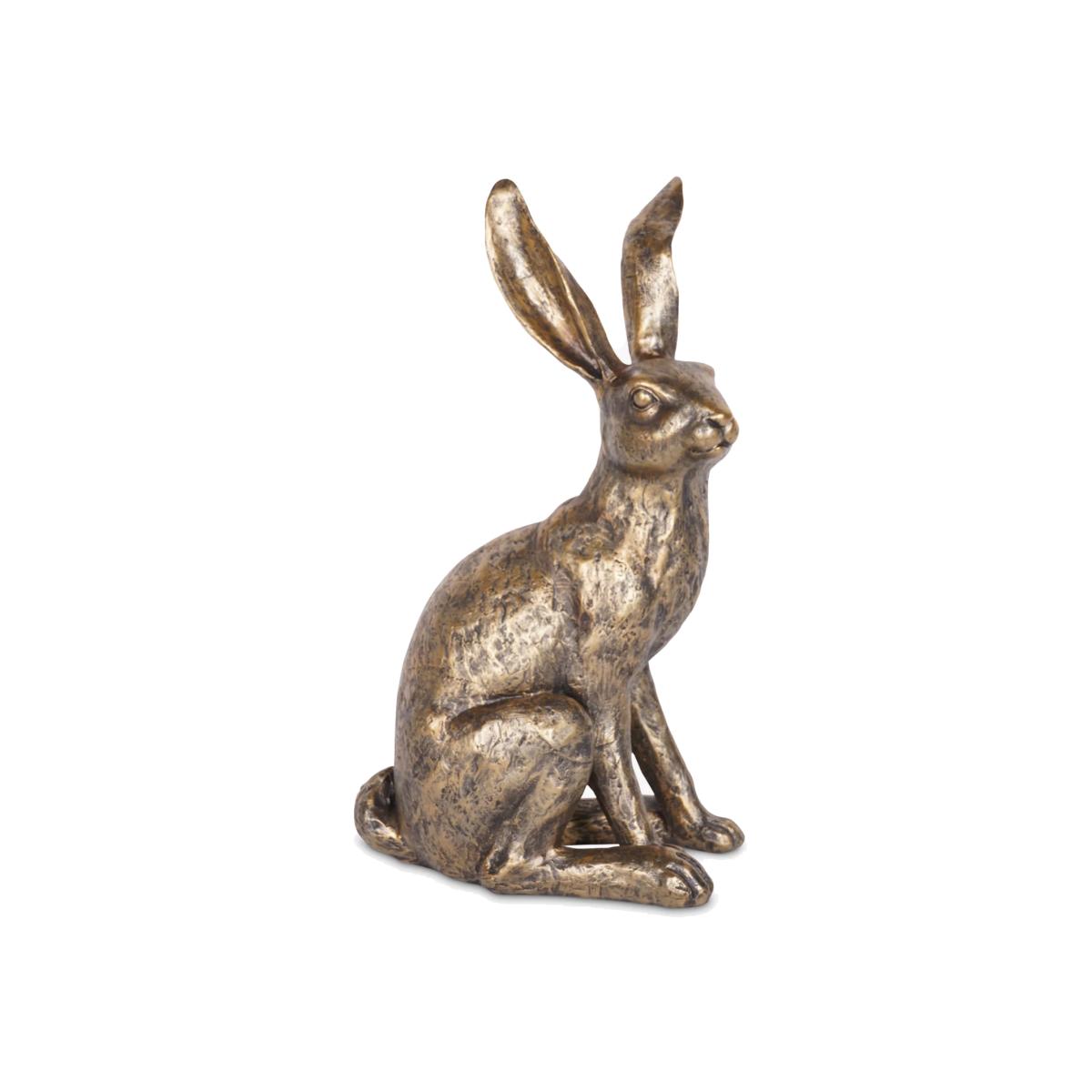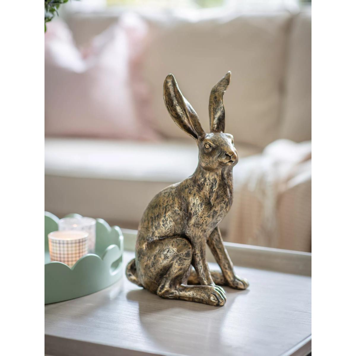 Large playful sitting hare sculpture from Laura Ashley, finished in antique gold. A wonderful companion in any room.