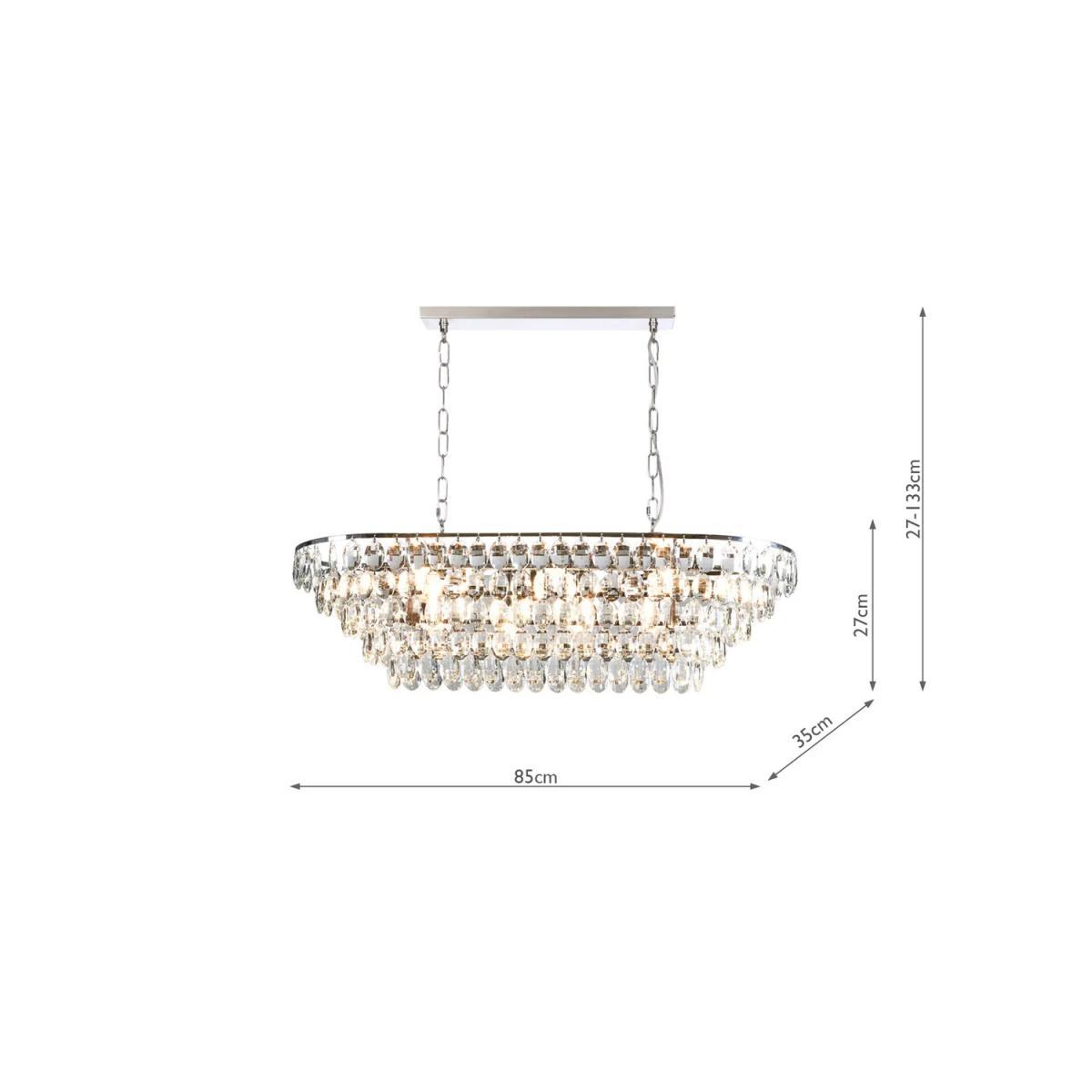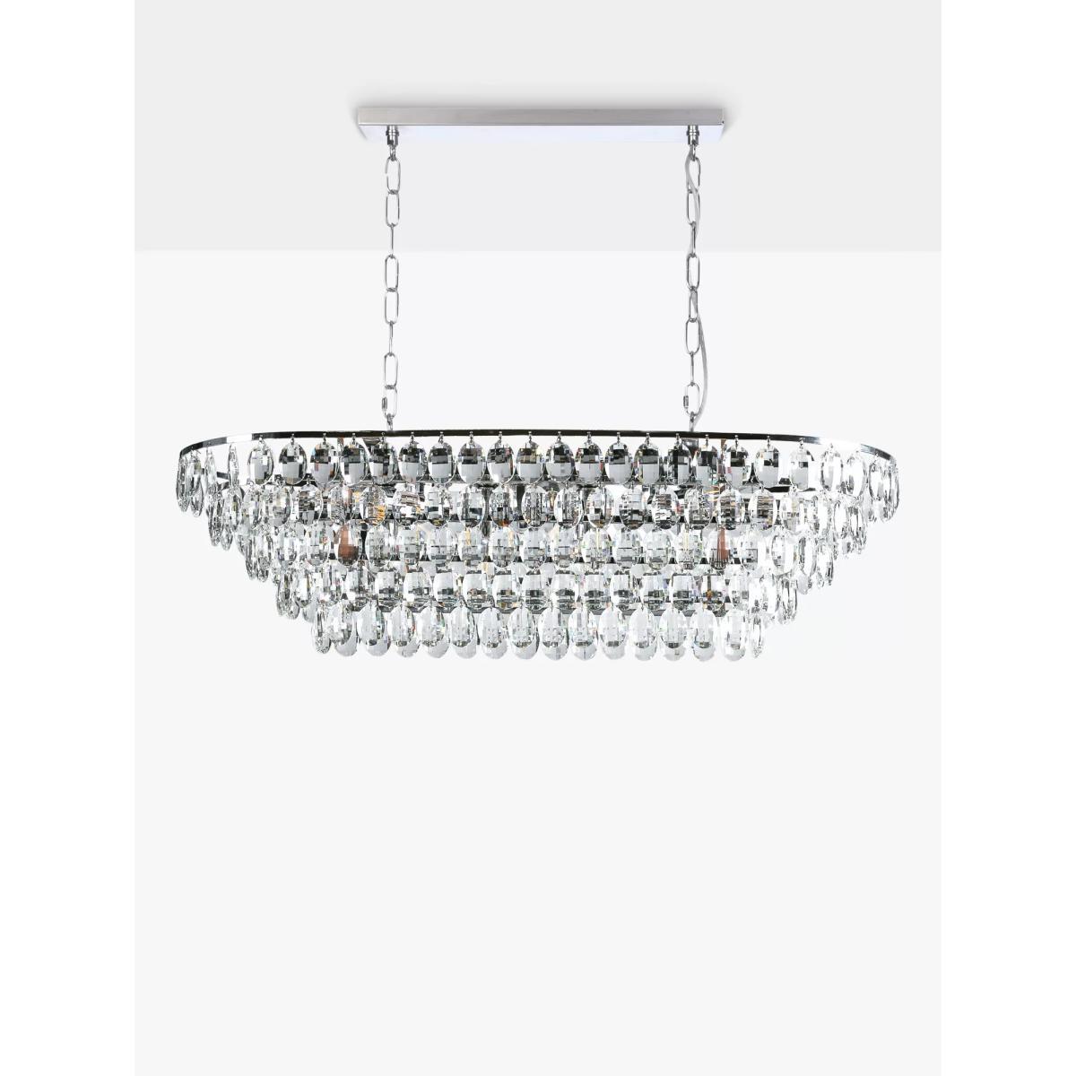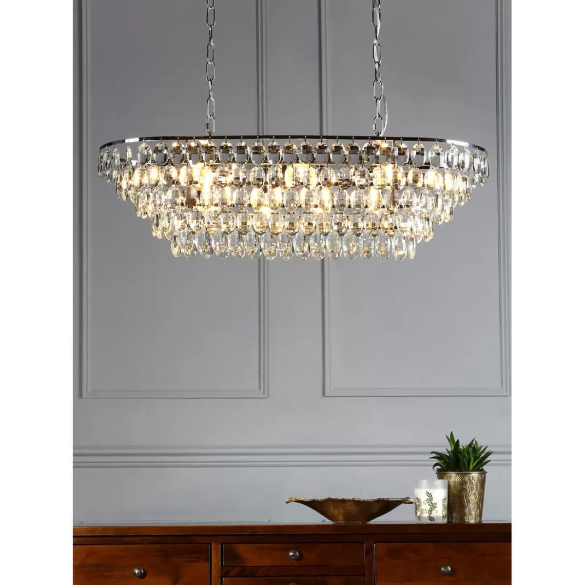 Gone are the days of dull ceiling lighting because it's time to embrace the crystals. This dazzling pendant has a rectangular shape with curved ends and features five tiers of oval and square faceted crystal droplets. It's height-adjustable at the point of installation and 12 LED bulbs are required. When illuminated, it radiates with a bright wash of light that will steal the spotlight in your home.