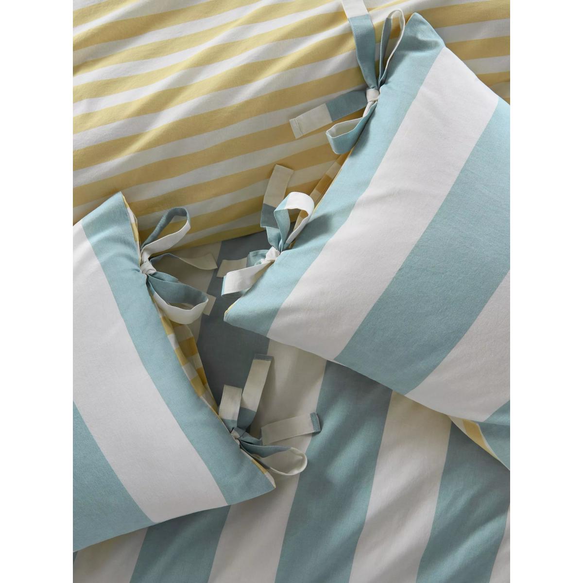 Lille stripe is a broad stripe design in two tonal colours to create a sophisticated but subtle effect, a seaspray blue face contrasts with a soft ochre reverse. Printed on to a soft 100% Relaxed Washed Cotton with beautiful tie detailing on the pillows. Set includes duvet cover and 2 pillowcases (Includes 1 pillowcase with single set).