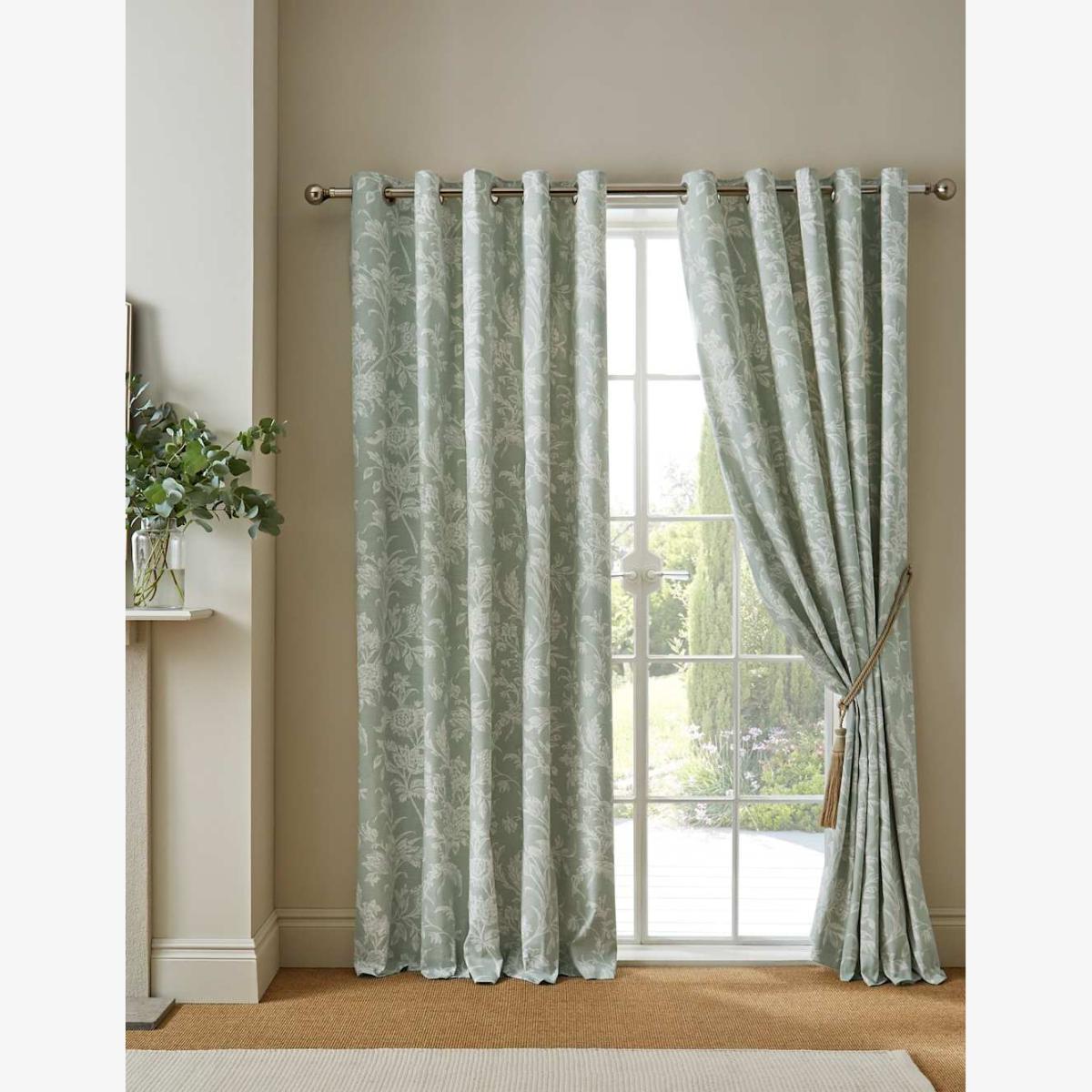 Laura Ashley Lloyd Pure Cotton Eyelet Curtains Green Mix