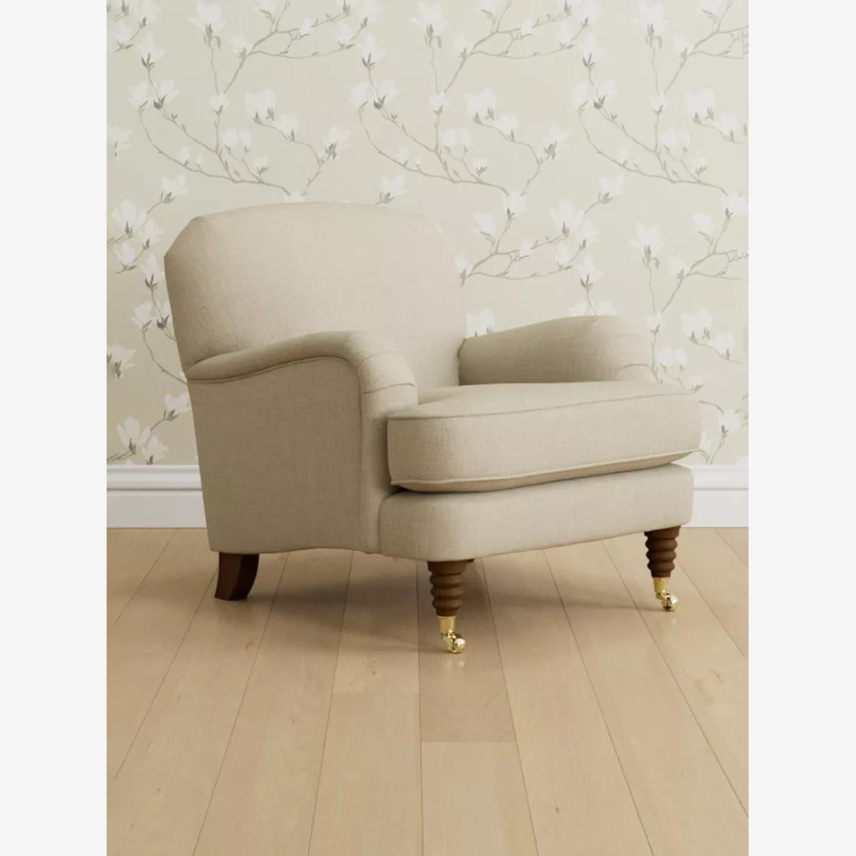 I’m a big fan of the Lynden chair for its clean lines, comfortable seat and turned teak legs, which add a touch of warmth without feeling fussy. The neutral linen-style fabric means it slips easily into both traditional and more contemporary schemes - it’s equally at home in a country cottage living room or a pared-back city flat. For a pulled-together look, position it next to a slim console or side table in matching woods and introduce a simple wool throw or a cushion in a muted check or stripe. Keep surrounding décor light and uncluttered so the chair’s shape remains the focal point, and layer a natural-fibre rug underneath to ground the seating area.