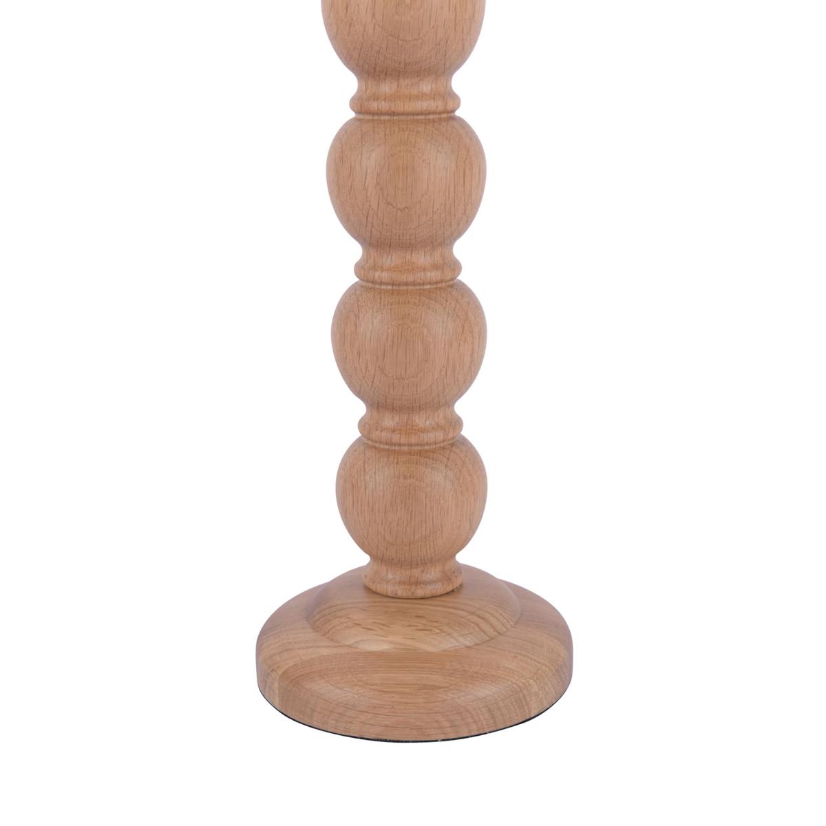 The Maria floor lamp base by Laura Ashley is a contemporary classic. Featuring a hand made bobble design, in oak wood and a candlestick shape. Finished with natural wax to enhance the natural grain of the wood. It is paired with a 30cm drum shade in silver.