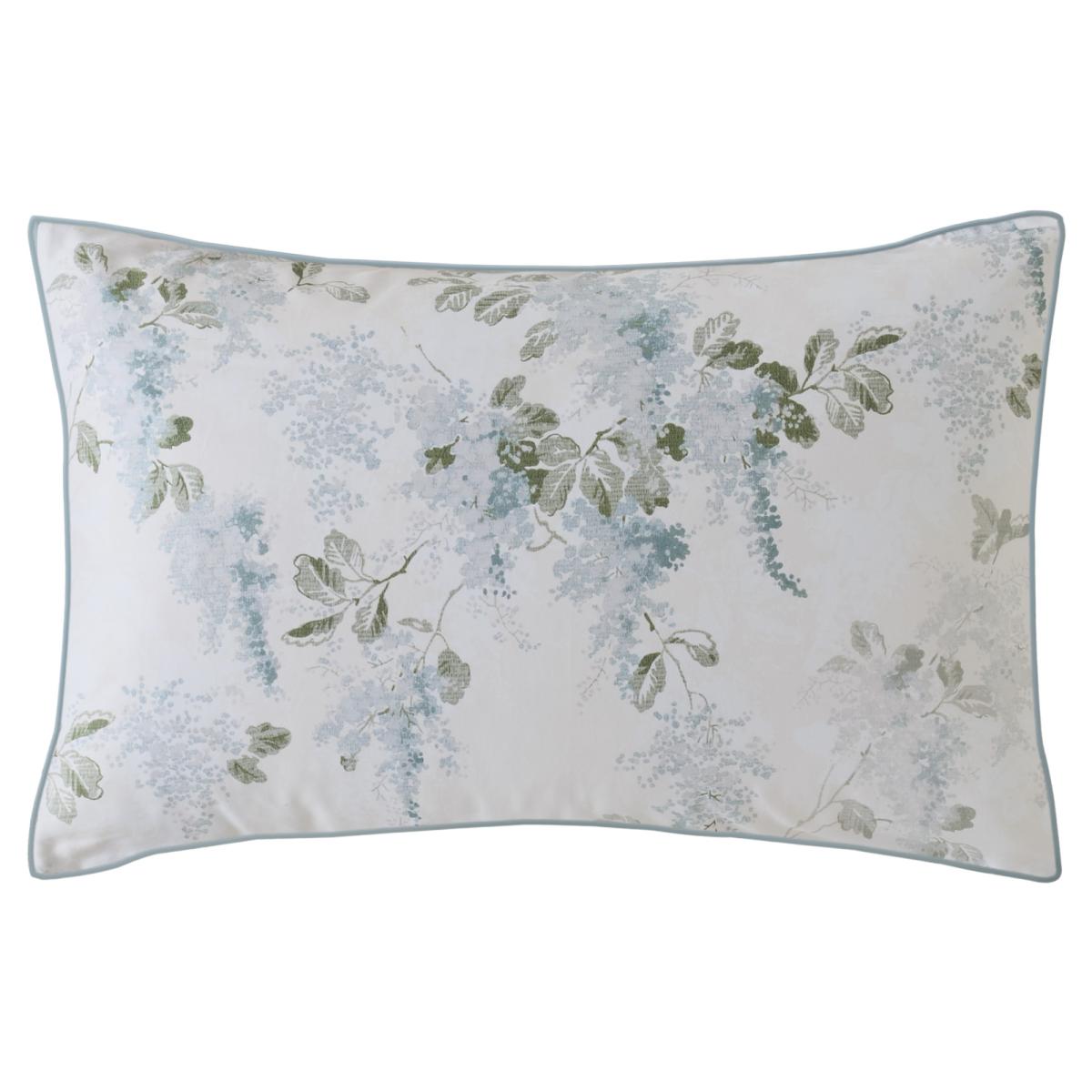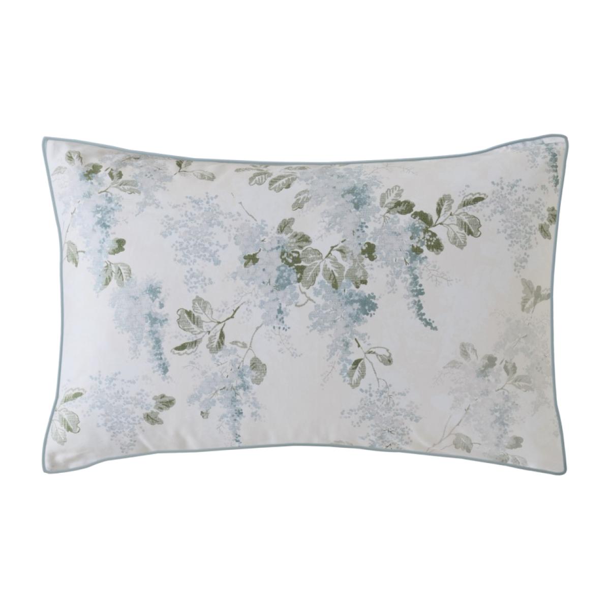 Delicate and effortlessly charming, the Laura Ashley Mirabelle Pillowcase Pair feature an elegant trailing design of lilac tree branches and simplified leaves. Taken from the Laura Ashley archive, this timeless print brings the fresh beauty of spring into your home. Soft shades of blue and green create a serene and inviting feel, perfectly complemented by the luxurious 100% cotton sateen fabric with a 220 thread count for a smooth, silky finish. The design is elegantly framed with a sophisticated flat pipe edge, adding a refined touch to this beautifully crafted bedset. A perfect balance of heritage and contemporary style. Features: 220 Thread Count 100% Cotton sateen Fully Reversible Care Instructions: Machine Washable at 40°C Do Not Dry Clean Do Not Use Bleach Tumble dry at low temperature Warm iron Please note All screens vary in colour reproduction and whilst every effort has been made to display the colour as accurately as possible it is for guidance only.