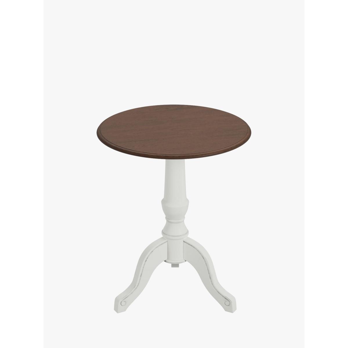 A side table that can be styled in living spaces or in bedrooms. Made from solid and veneered wood with a painted base in a distressed finish and an aged walnut top, this table exudes classic charm. Elegant, French-inspired features include cabriole legs and its turned pedestal frame. Want to see it first? You may want to see and get a feel for the furniture in one of our shops before ordering. We'll be able to tell you where the range you'd like to view is on display.