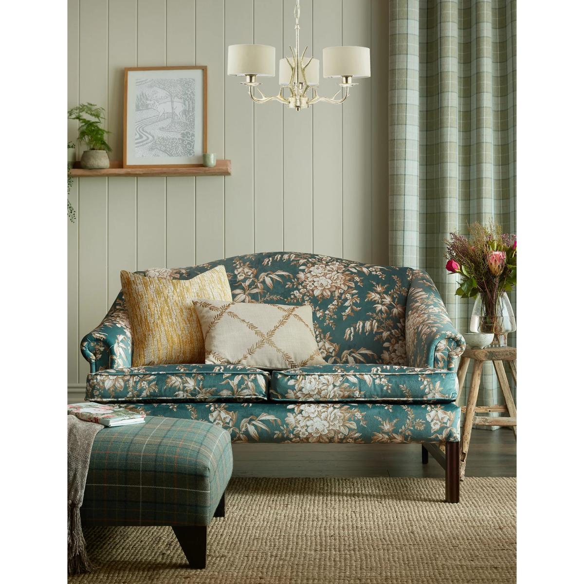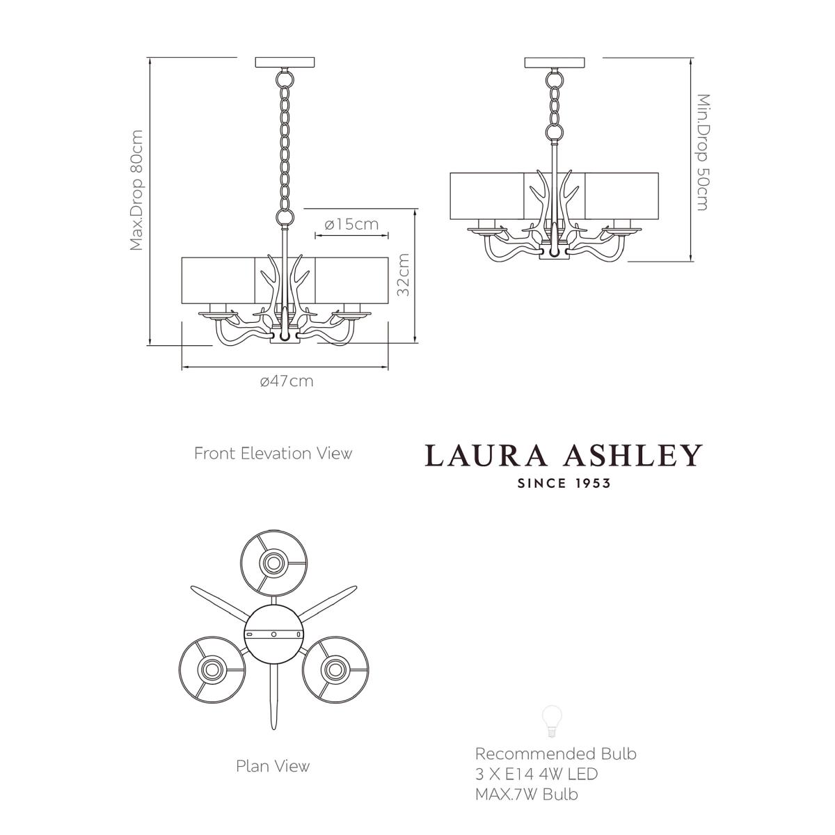 Elevate your interior with this Laura Ashley pendant light, a perfect choice for adding an elegant touch. The candelabra-style, resin antler design with three arms exudes a touch of glamour. Each lamp comes with an elegant shade to enhance the sophisticated look.